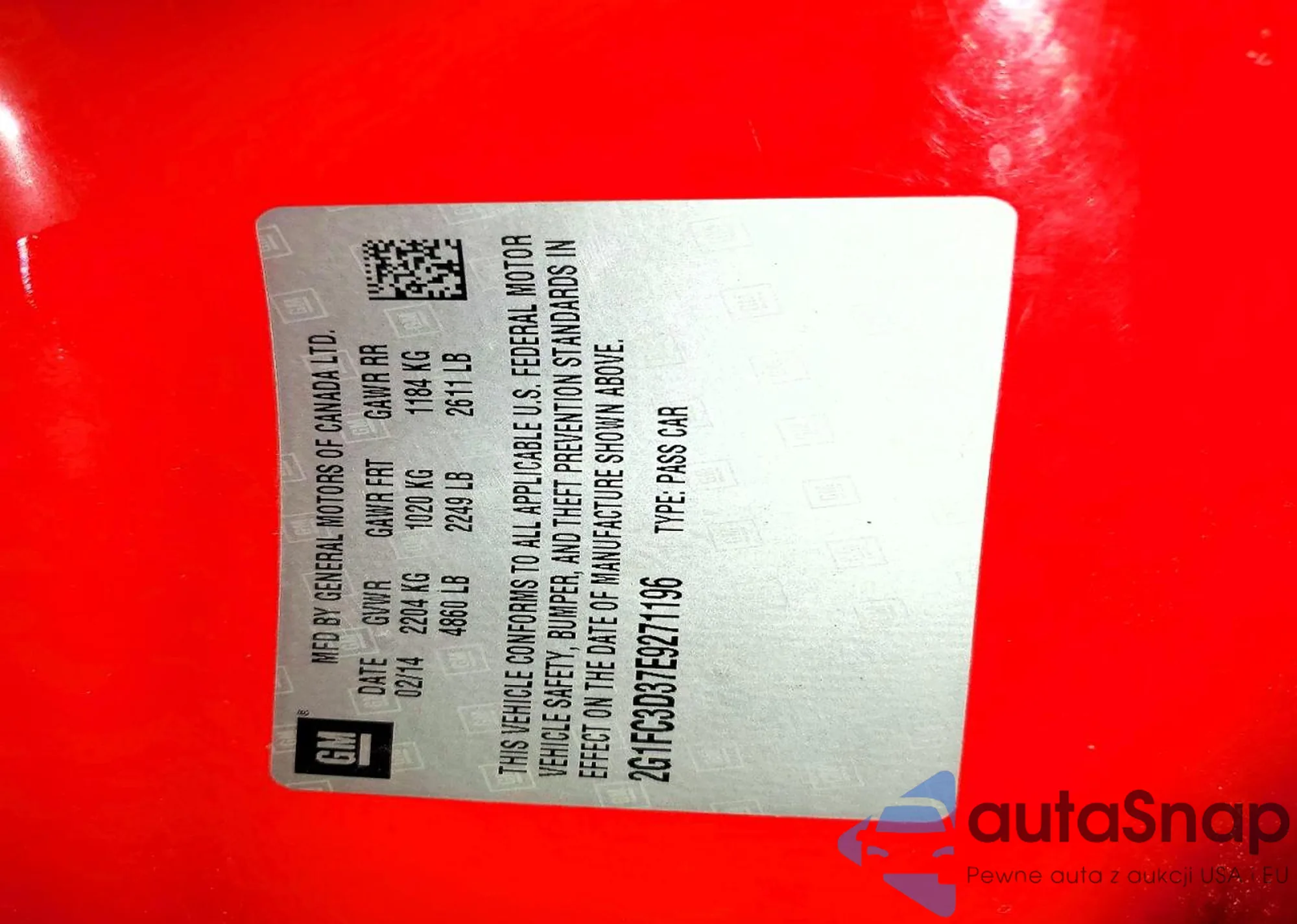 VIN: 2G1FC3D37E9271196