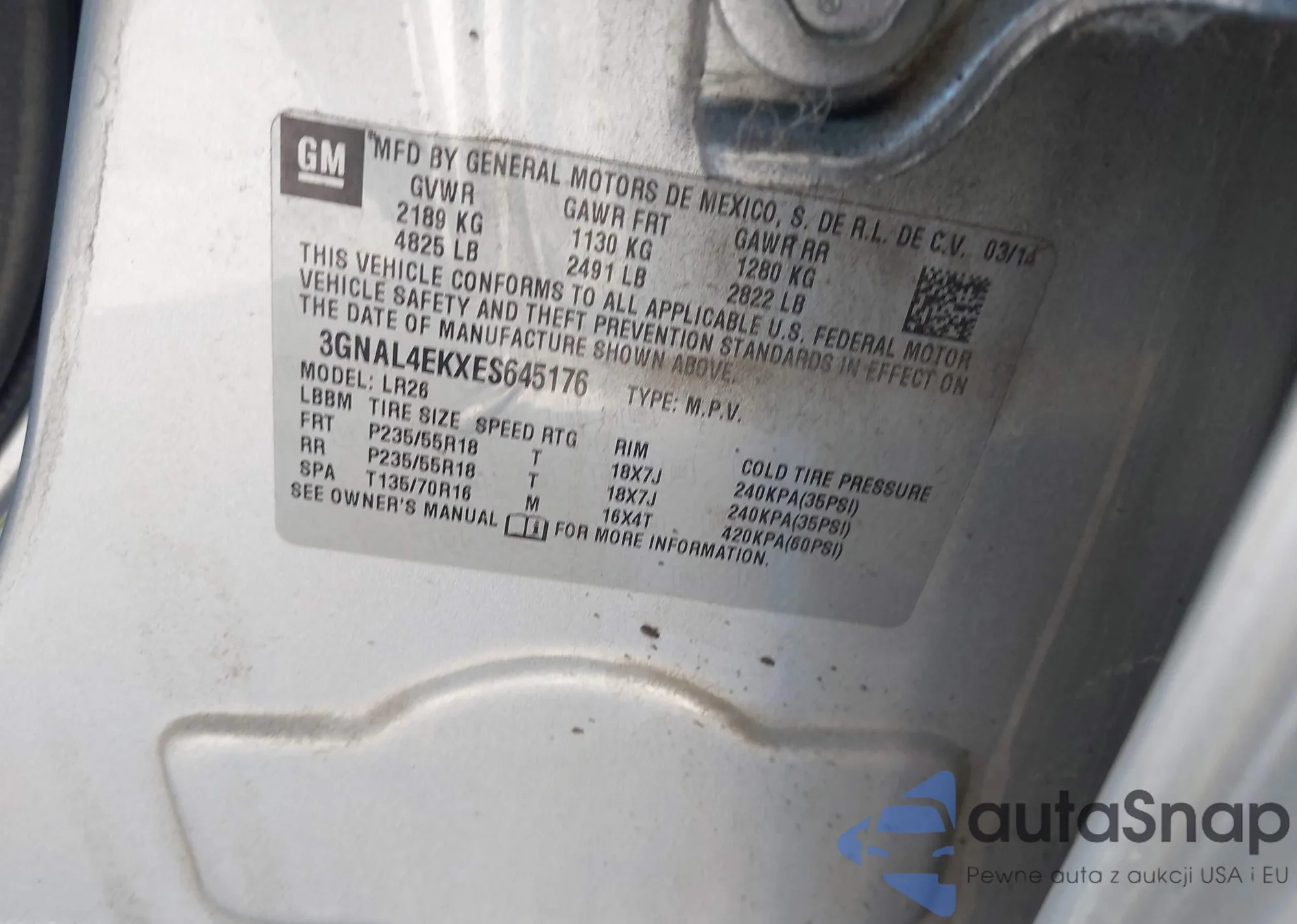 Samochód Chevrolet Captiva Sport 2014 (VIN 3GNAL4EKXES645176) sprzedaje go niezweryfikowany sprzedawca. Zalecamy raport Carfax i potwierdzenie możliwości rejestracji pojazdu przed zakupem.