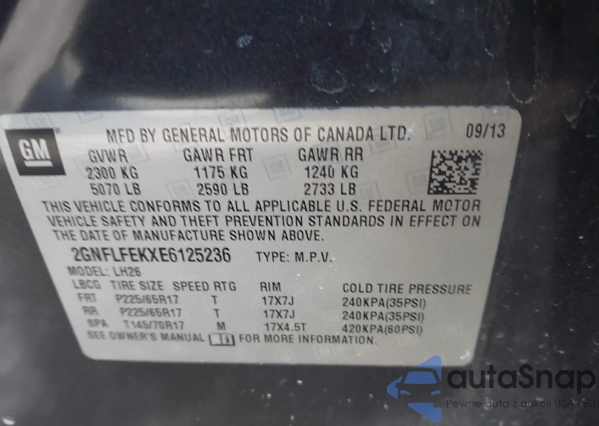 Samochód Chevrolet Equinox 2014 (VIN 2GNFLFEKXE6125236) nie był wcześniej licytowany. Dokumenty są czyste, przebieg odpowiada lub jest niższy niż średnia rynku. Sprzedaje go firma ubezpieczeniowa – polecamy zakup. Dostawa do portu zajmie ok. 6–8 tygodni.