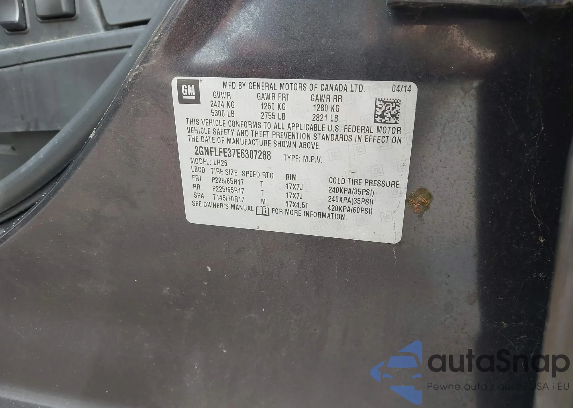 • VIN: 2GNFLFE37E6307288