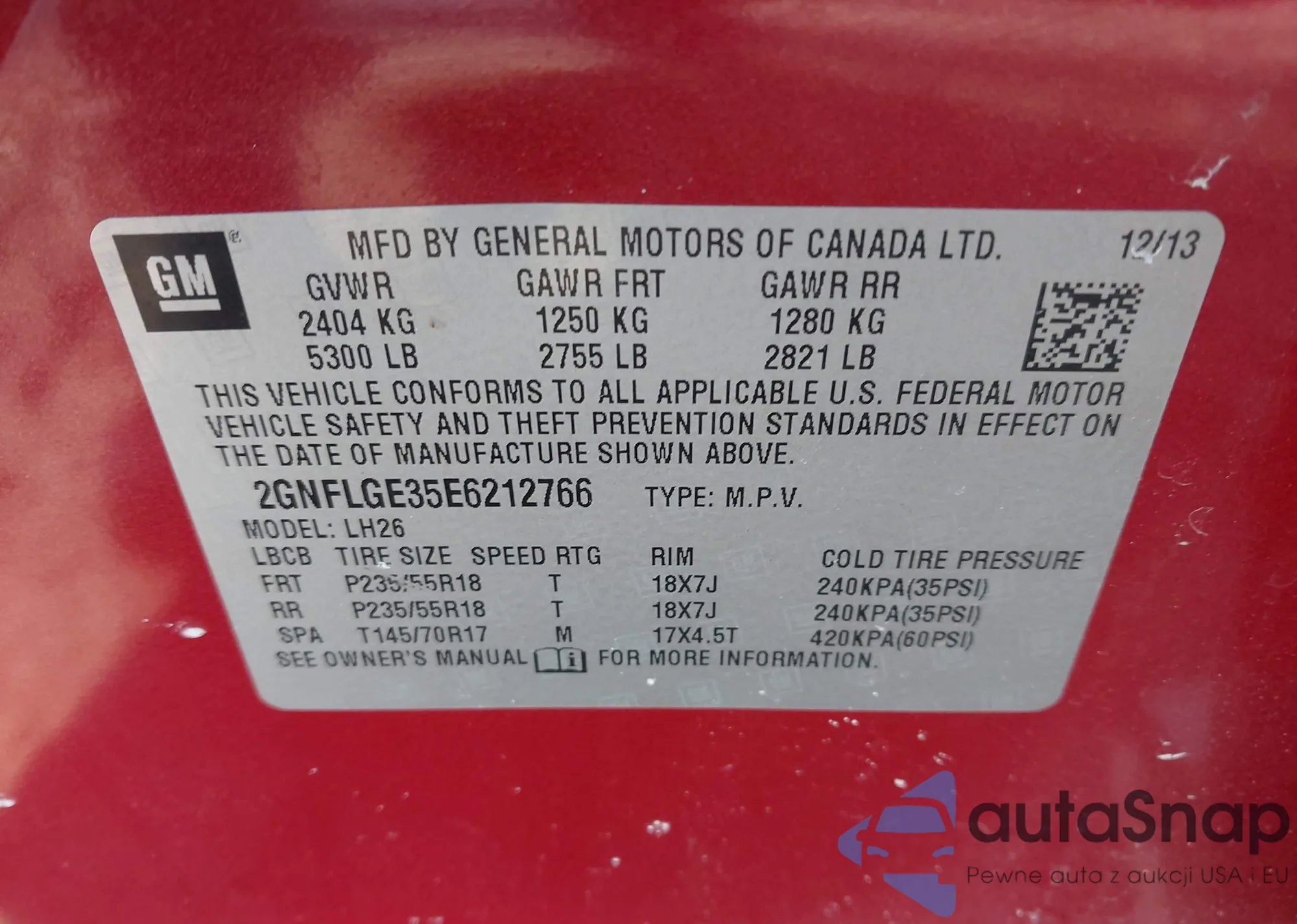 • VIN: 2GNFLGE35E6212766