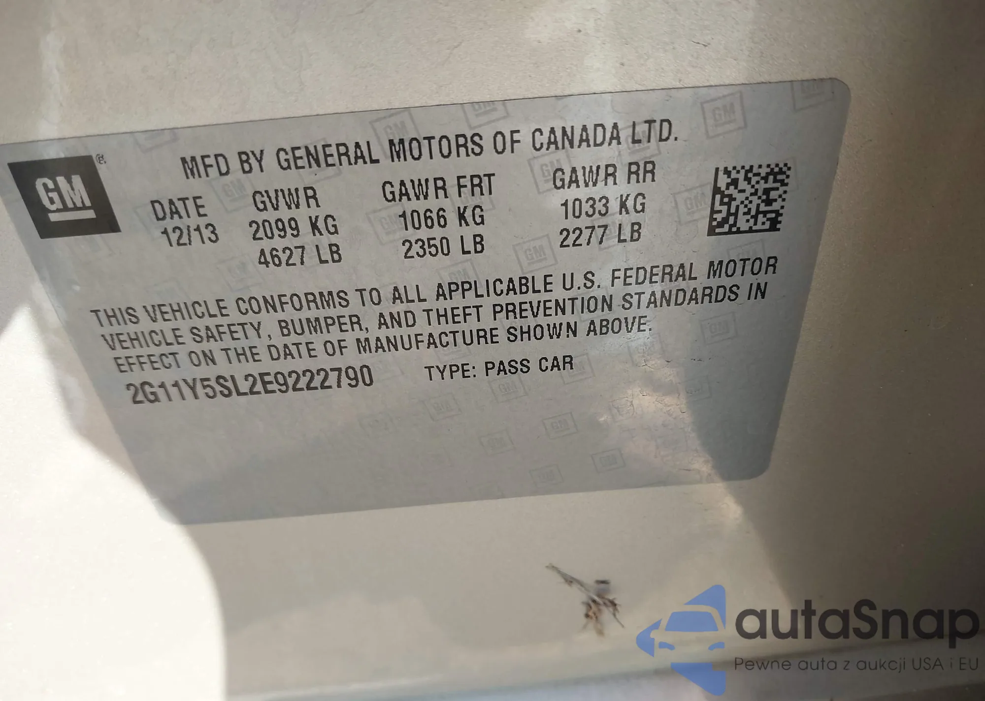 • VIN: 2G11Y5SL2E9222790