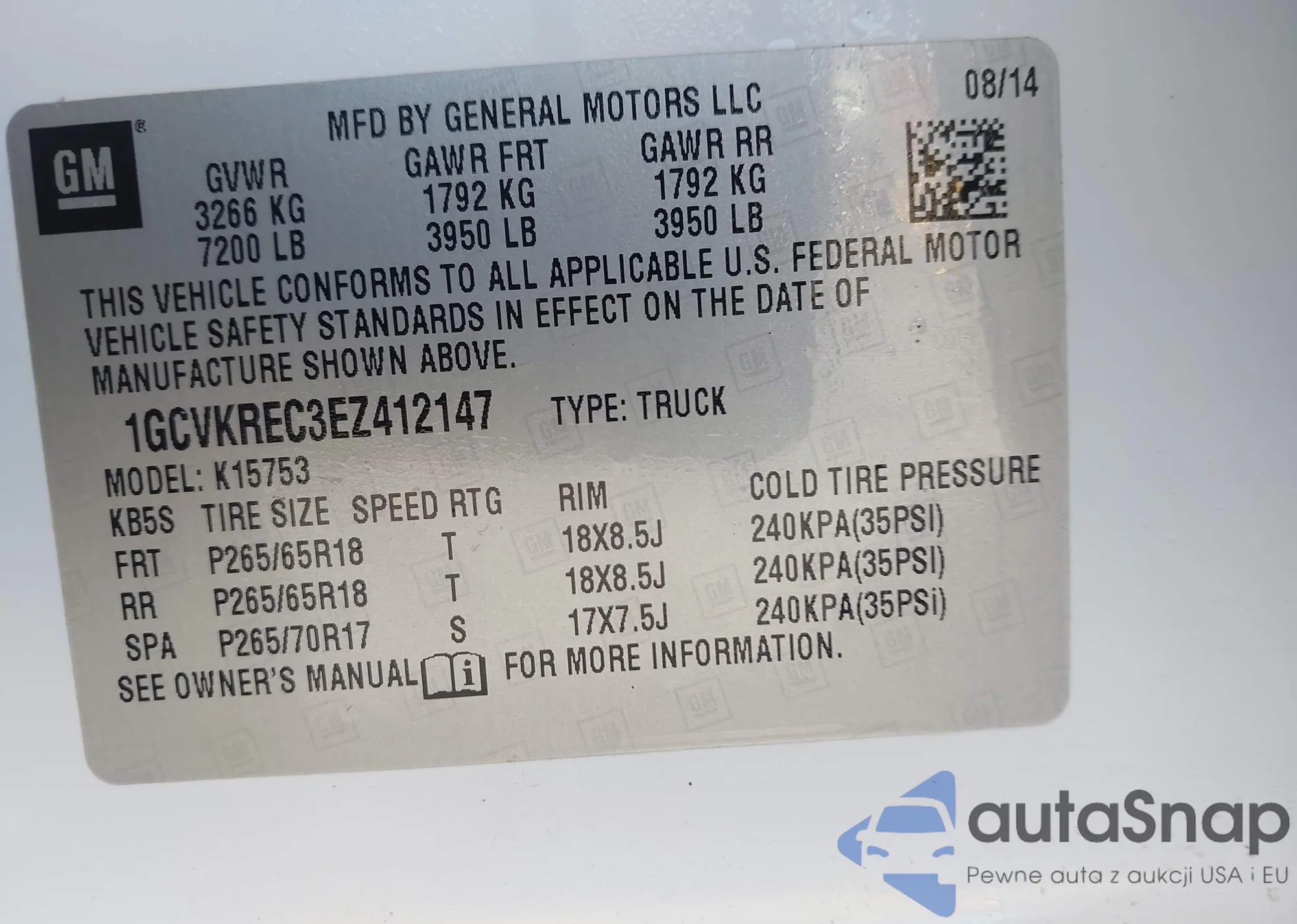 VIN: 1GCVKREC3EZ412147