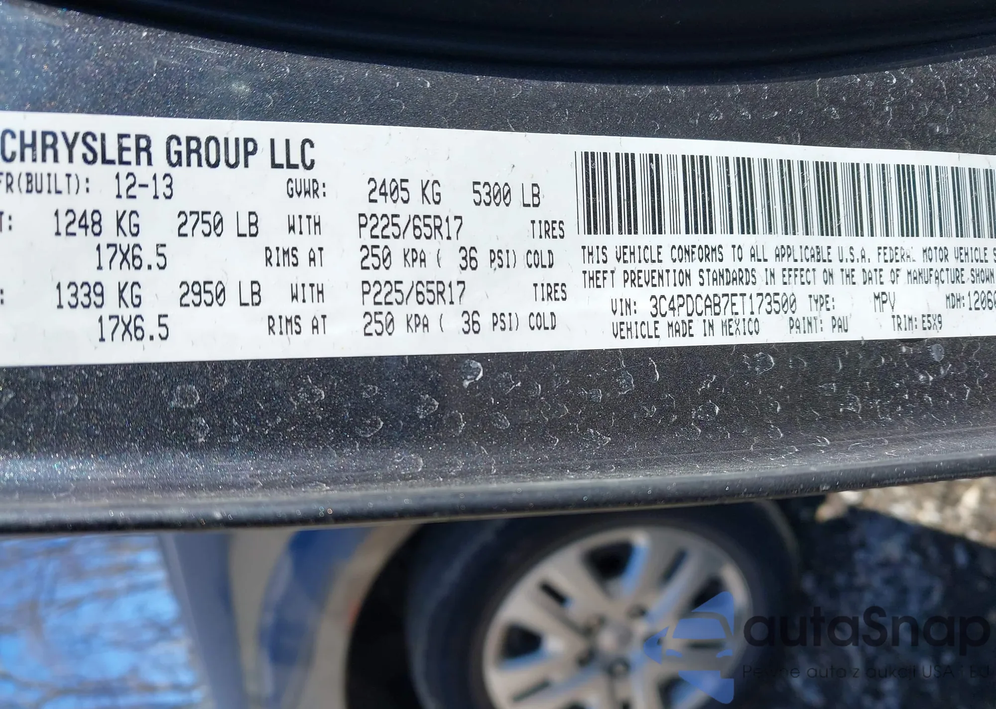Samochód Dodge Journey 2014 (VIN 3C4PDCAB7ET173500) sprzedaje go niezweryfikowany sprzedawca. Zalecamy raport Carfax i potwierdzenie możliwości rejestracji pojazdu przed zakupem.