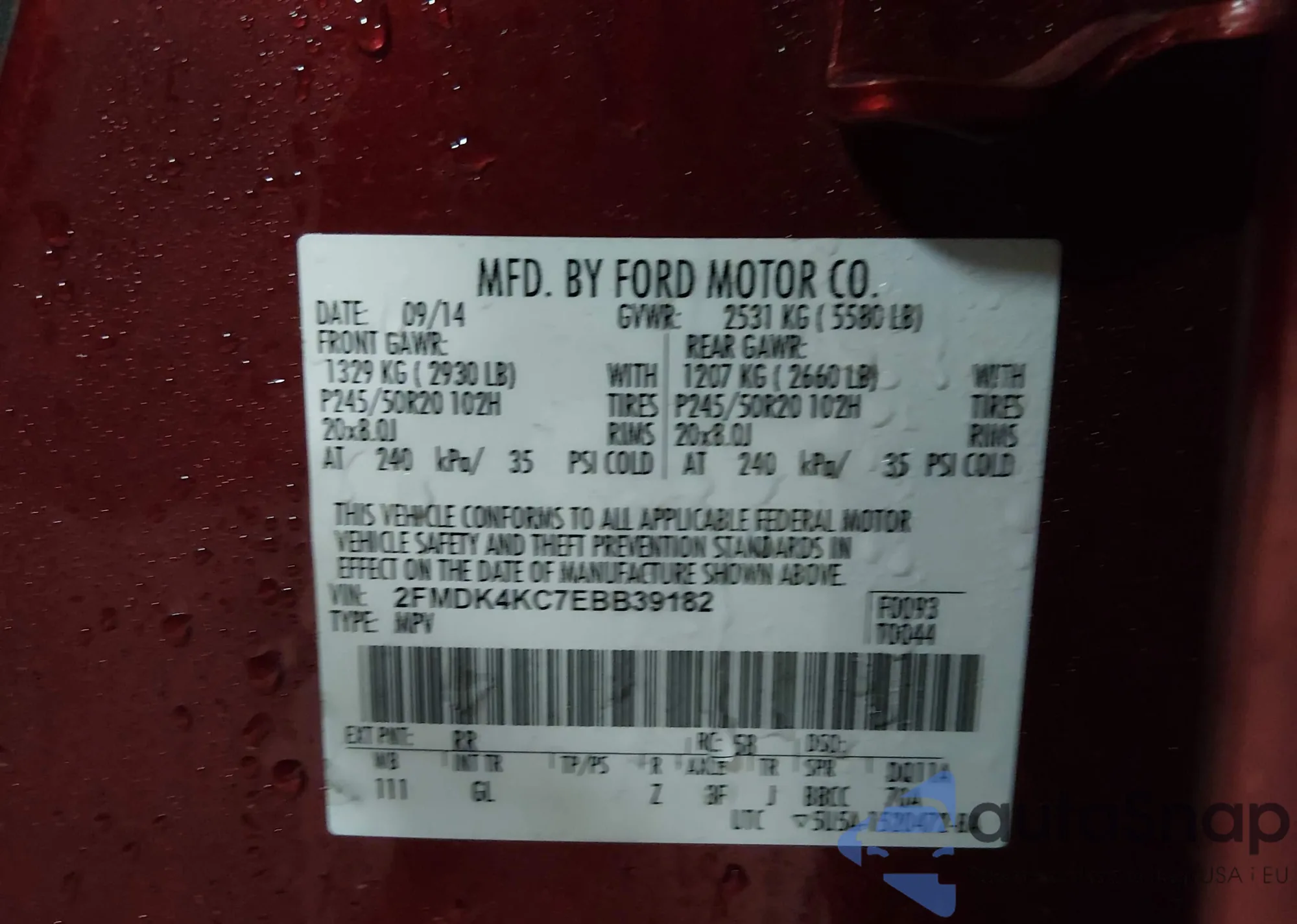 Samochód Ford Edge 2014 (VIN 2FMDK4KC7EBB39182) nie był wcześniej licytowany. Dokumenty są czyste, przebieg odpowiada lub jest niższy niż średnia rynku. Sprzedaje go firma ubezpieczeniowa – polecamy zakup. Dostawa do portu zajmie ok. 6–8 tygodni.