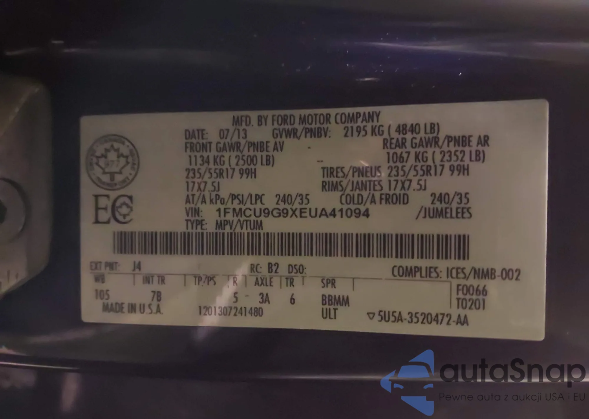 Samochód Ford Escape 2014 (VIN 1FMCU9G9XEUA41094) nie był wcześniej licytowany. Dokumenty są czyste, przebieg odpowiada lub jest niższy niż średnia rynku. Sprzedaje go firma ubezpieczeniowa – polecamy zakup. Dostawa do portu zajmie ok. 6–8 tygodni.
