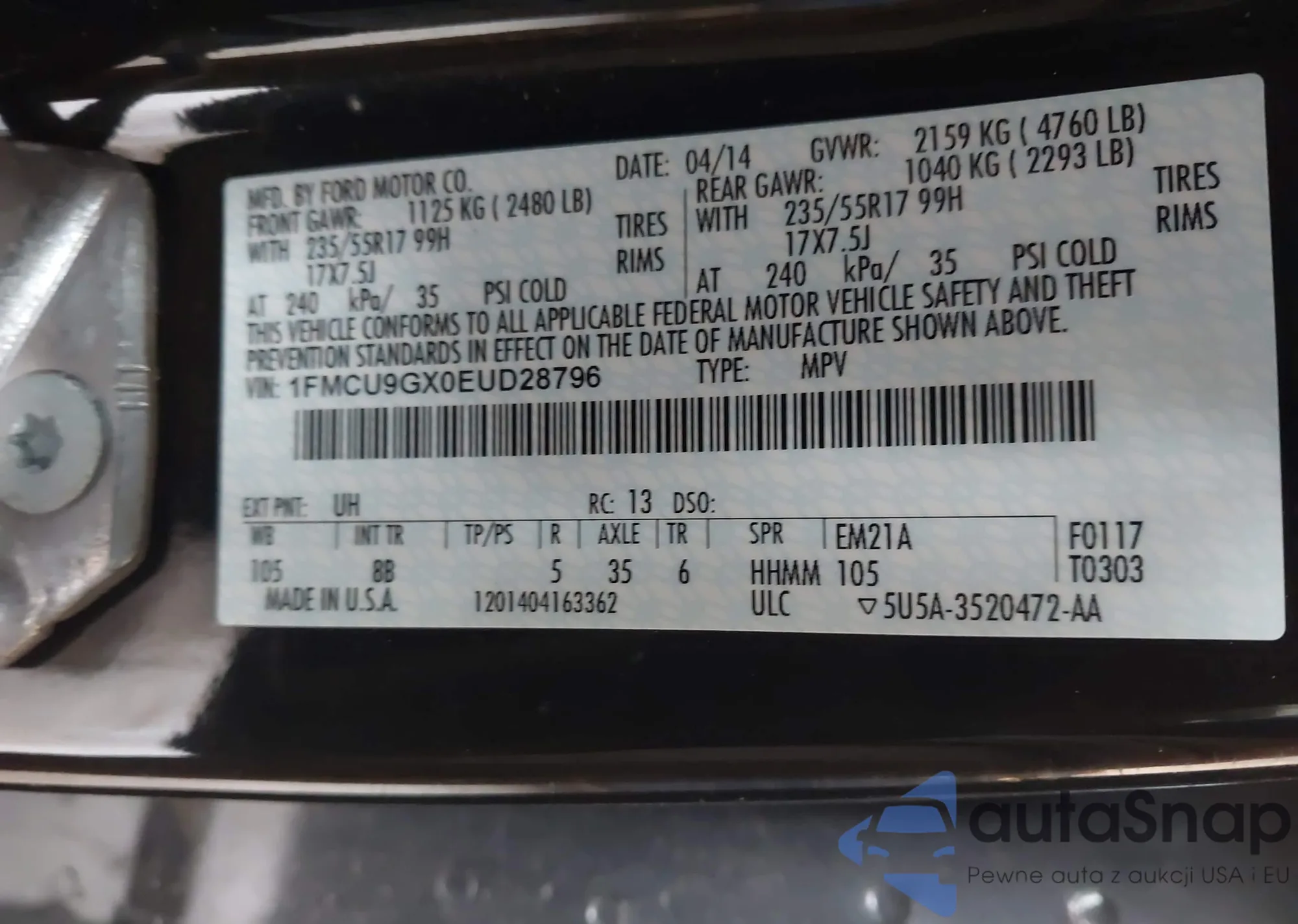 VIN: 1FMCU9GX0EUD28796