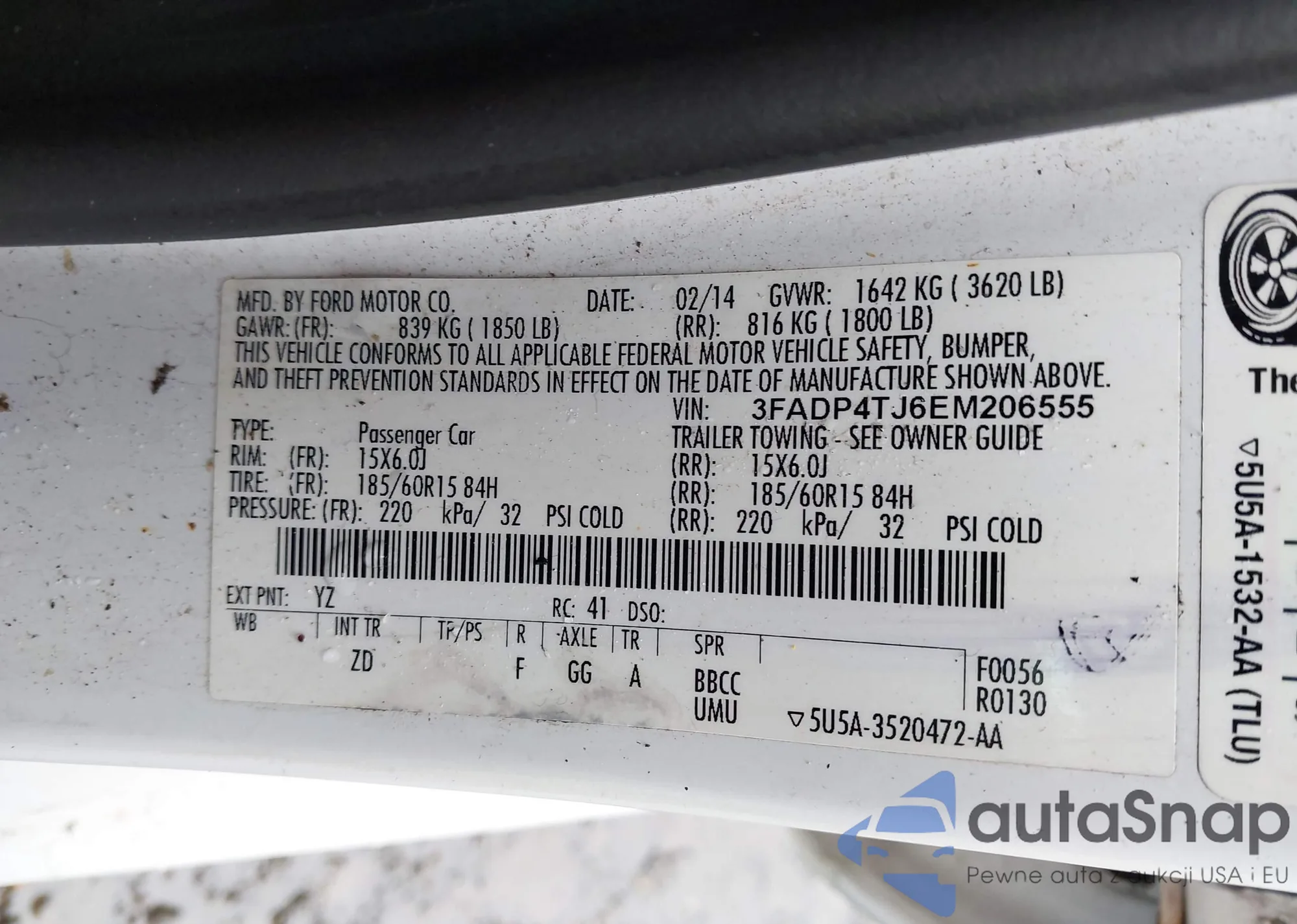 • VIN: 3FADP4TJ6EM206555