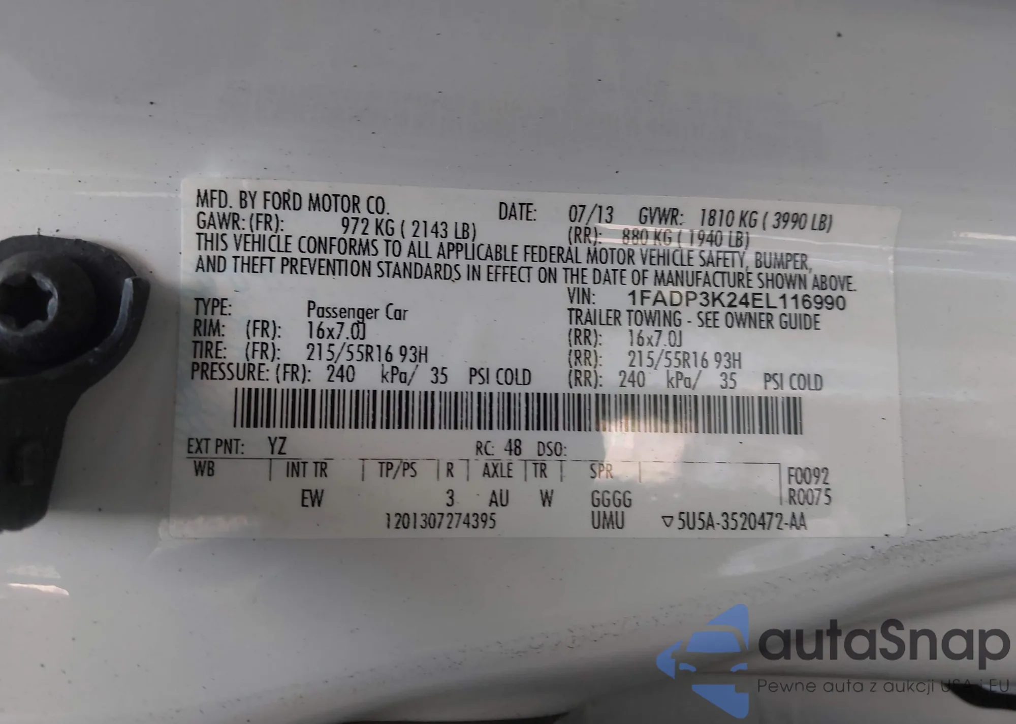 VIN: 1FADP3K24EL116990