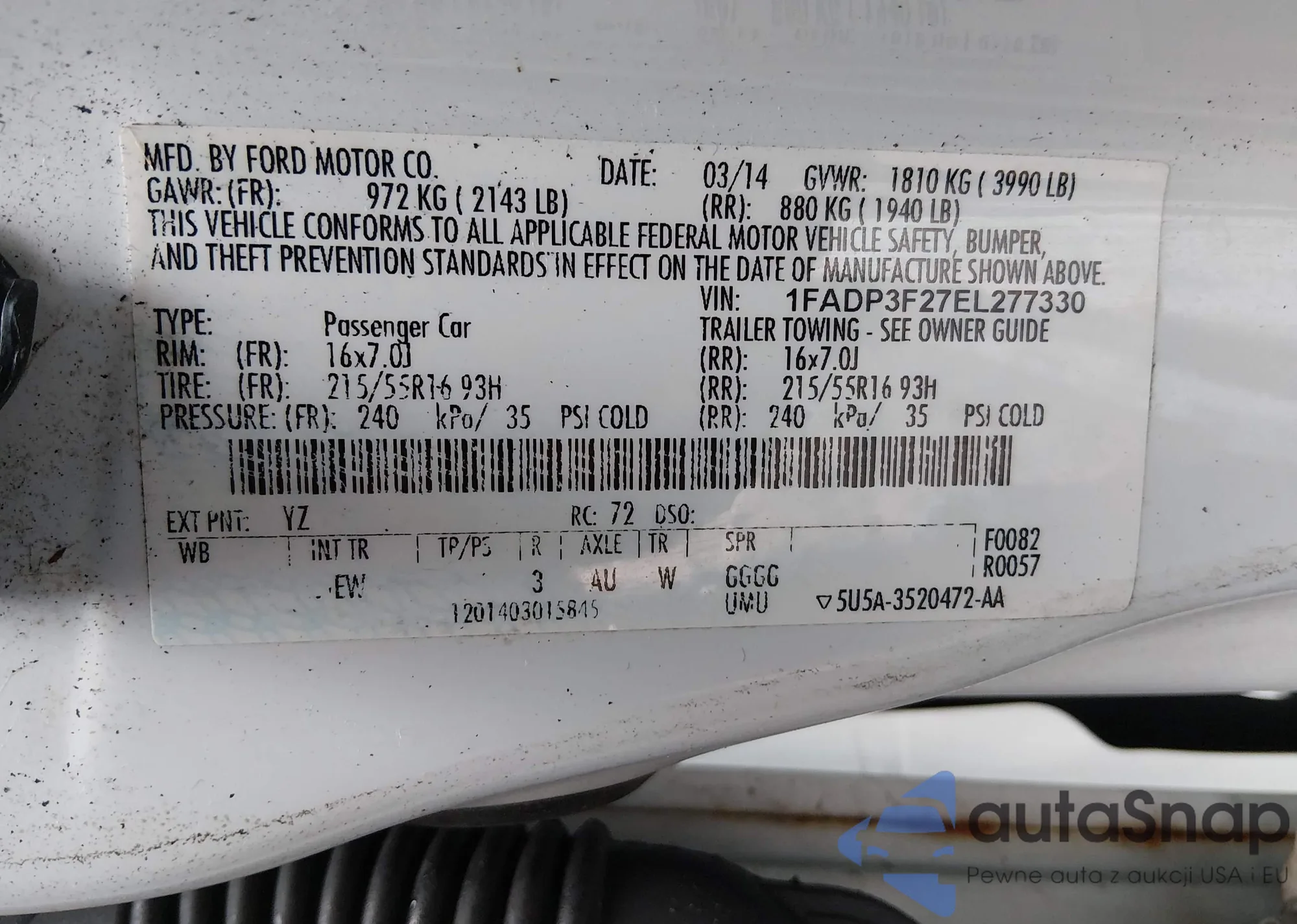 VIN: 1FADP3F27EL277330