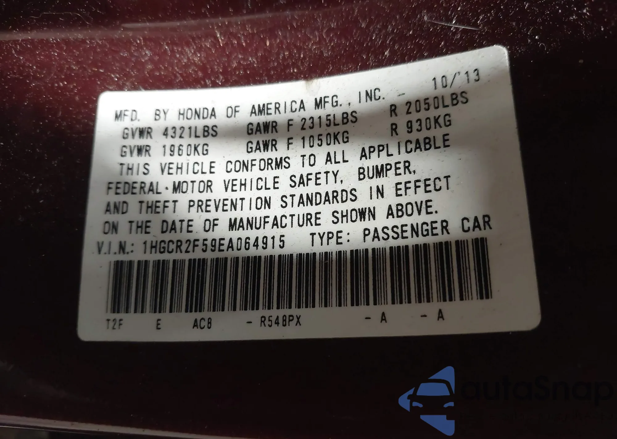 VIN: 1HGCR2F59EA064915