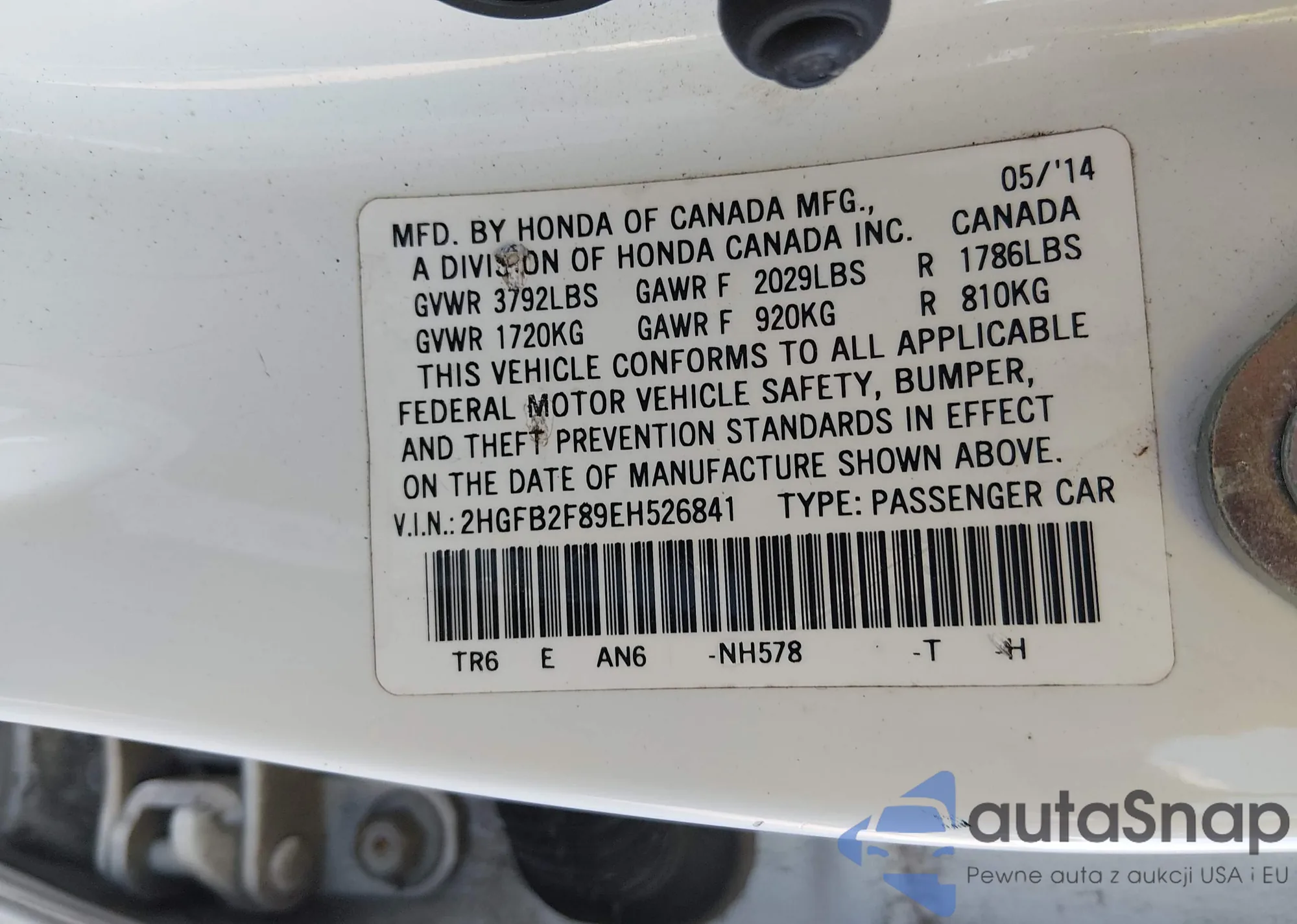 Samochód Honda Civic 2014 (VIN 2HGFB2F89EH526841) nie był wcześniej licytowany. Dokumenty są czyste, przebieg odpowiada lub jest niższy niż średnia rynku. Sprzedaje go firma ubezpieczeniowa – polecamy zakup. Dostawa do portu zajmie ok. 6–8 tygodni.