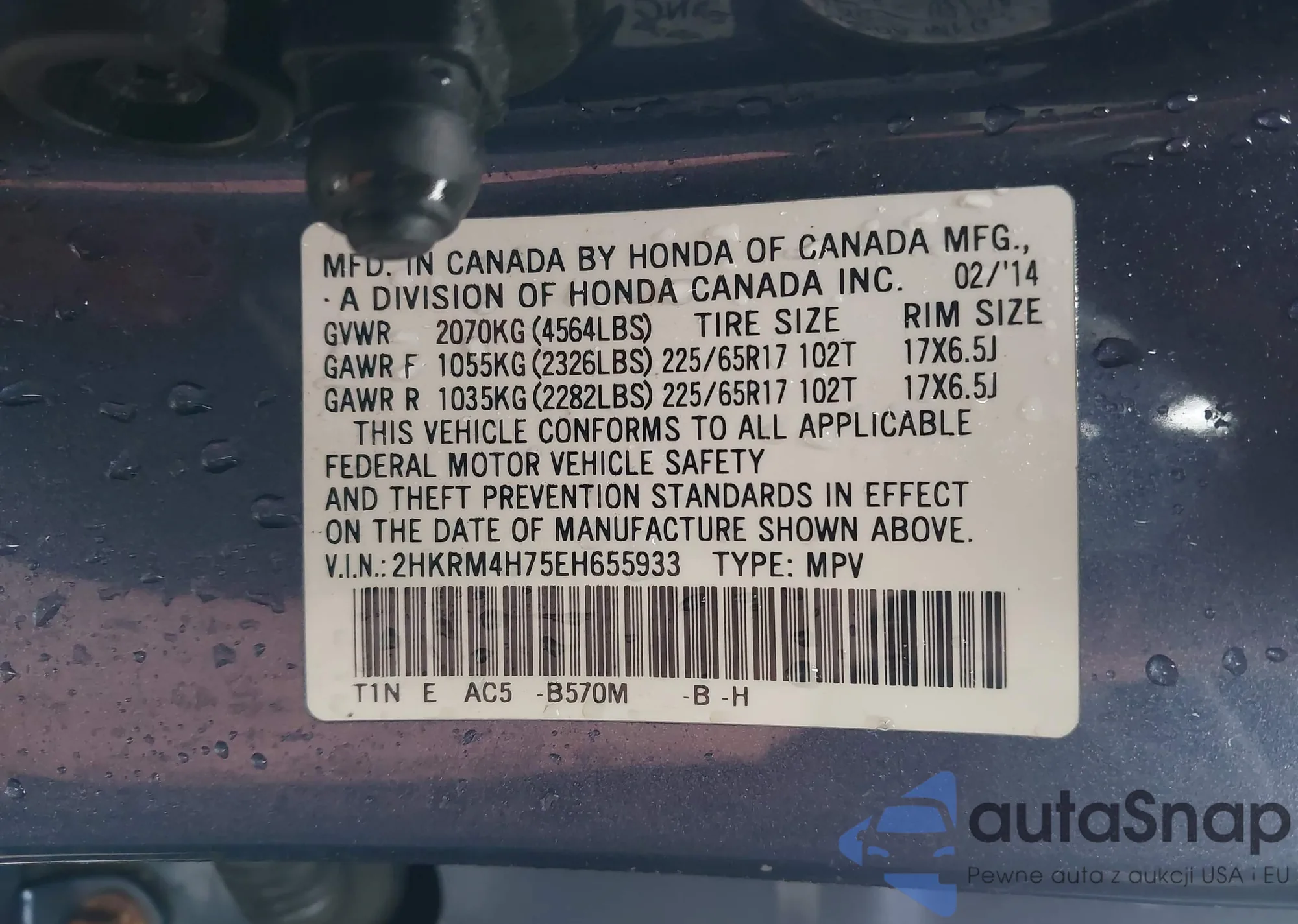 Samochód Honda CR-V 2014 (VIN 2HKRM4H75EH655933) nie był wcześniej licytowany. Dokumenty są czyste, przebieg odpowiada lub jest niższy niż średnia rynku. Sprzedaje go firma ubezpieczeniowa – polecamy zakup. Dostawa do portu zajmie ok. 6–8 tygodni.