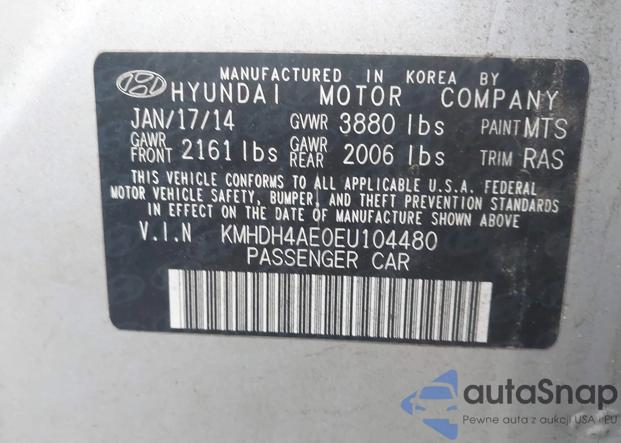 VIN: KMHDH4AE0EU104480