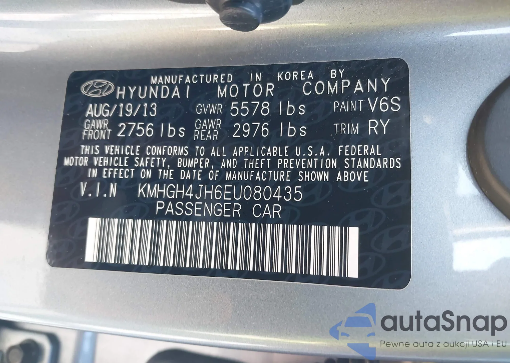 VIN: KMHGH4JH6EU080435