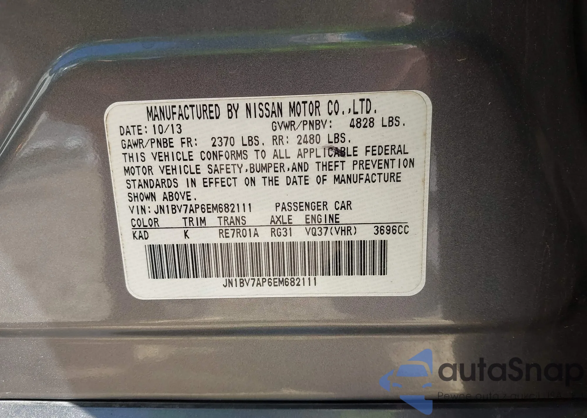 Samochód Infiniti Q50 2014 (VIN JN1BV7AP6EM682111) nie był wcześniej licytowany. Dokumenty są czyste, przebieg odpowiada lub jest niższy niż średnia rynku. Sprzedaje go firma ubezpieczeniowa – polecamy zakup. Dostawa do portu zajmie ok. 6–8 tygodni.