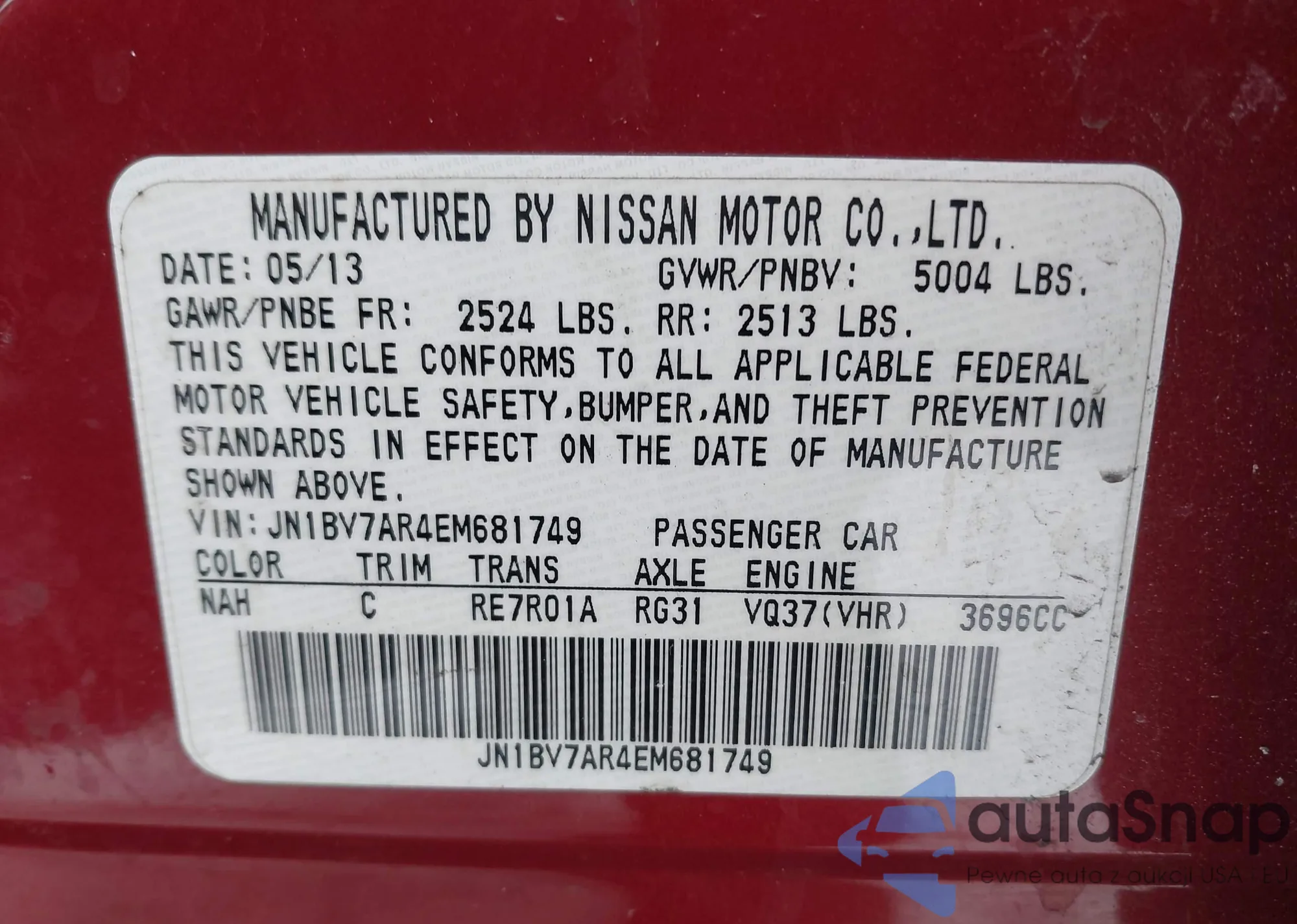 • VIN: JN1BV7AR4EM681749