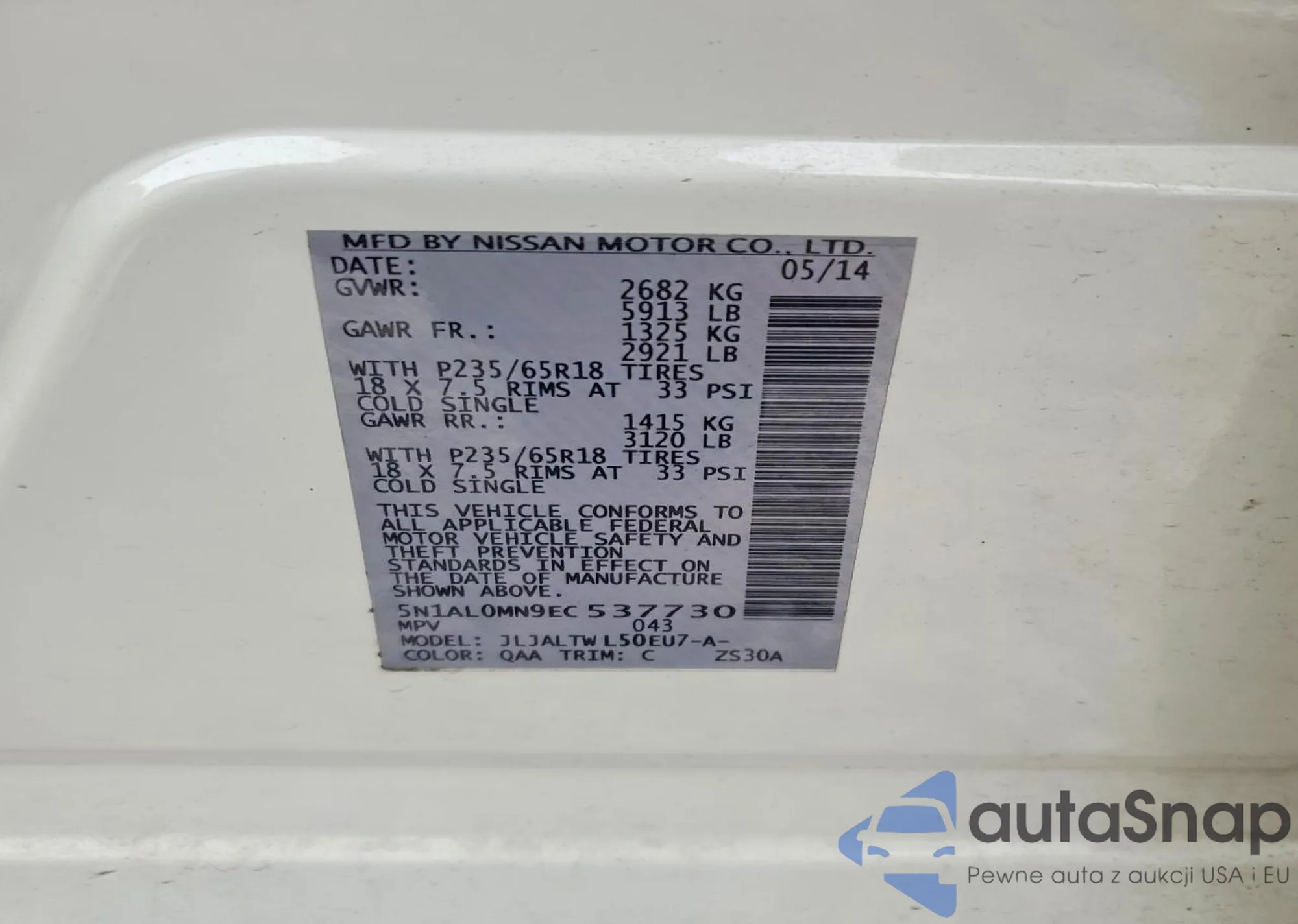 Samochód Infiniti QX60 2014 (VIN 5N1AL0MN9EC537730) nie był wcześniej licytowany. Dokumenty są czyste, przebieg odpowiada lub jest niższy niż średnia rynku. Sprzedaje go firma ubezpieczeniowa – polecamy zakup. Dostawa do portu zajmie ok. 6–8 tygodni.