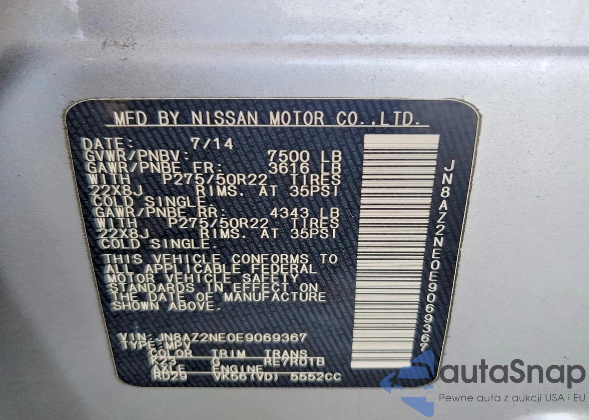VIN: JN8AZ2NE0E9069367