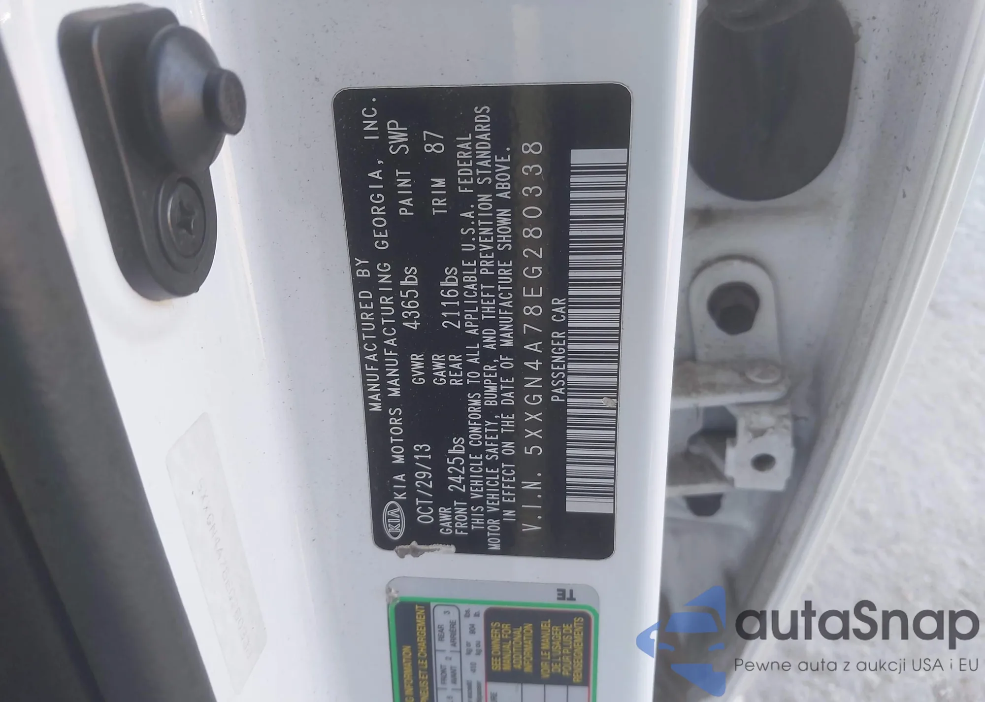 Samochód Kia Optima 2014 (VIN 5XXGN4A78EG280338) sprzedaje go niezweryfikowany sprzedawca. Zalecamy raport Carfax i potwierdzenie możliwości rejestracji pojazdu przed zakupem.