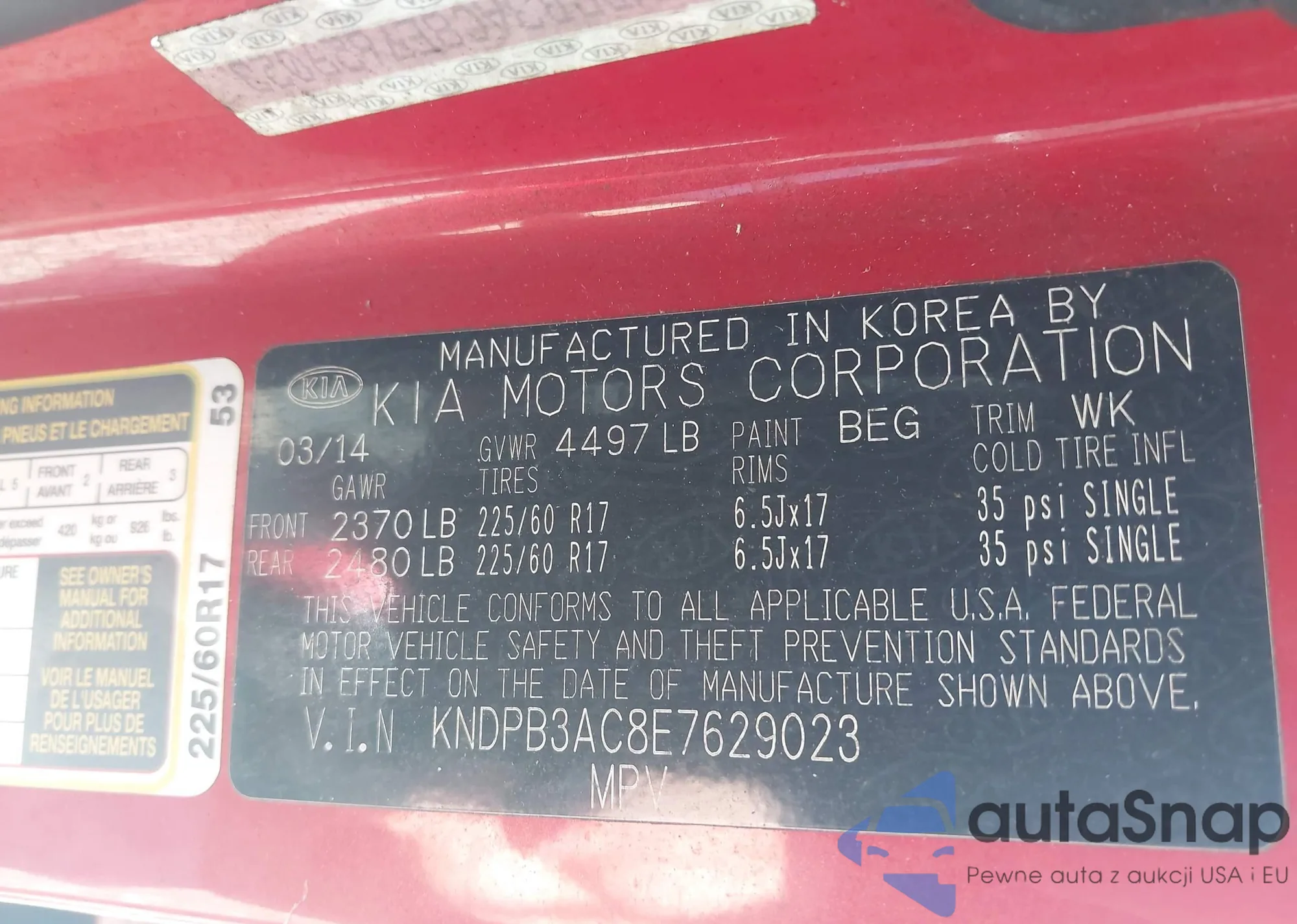 VIN: KNDPB3AC8E7629023