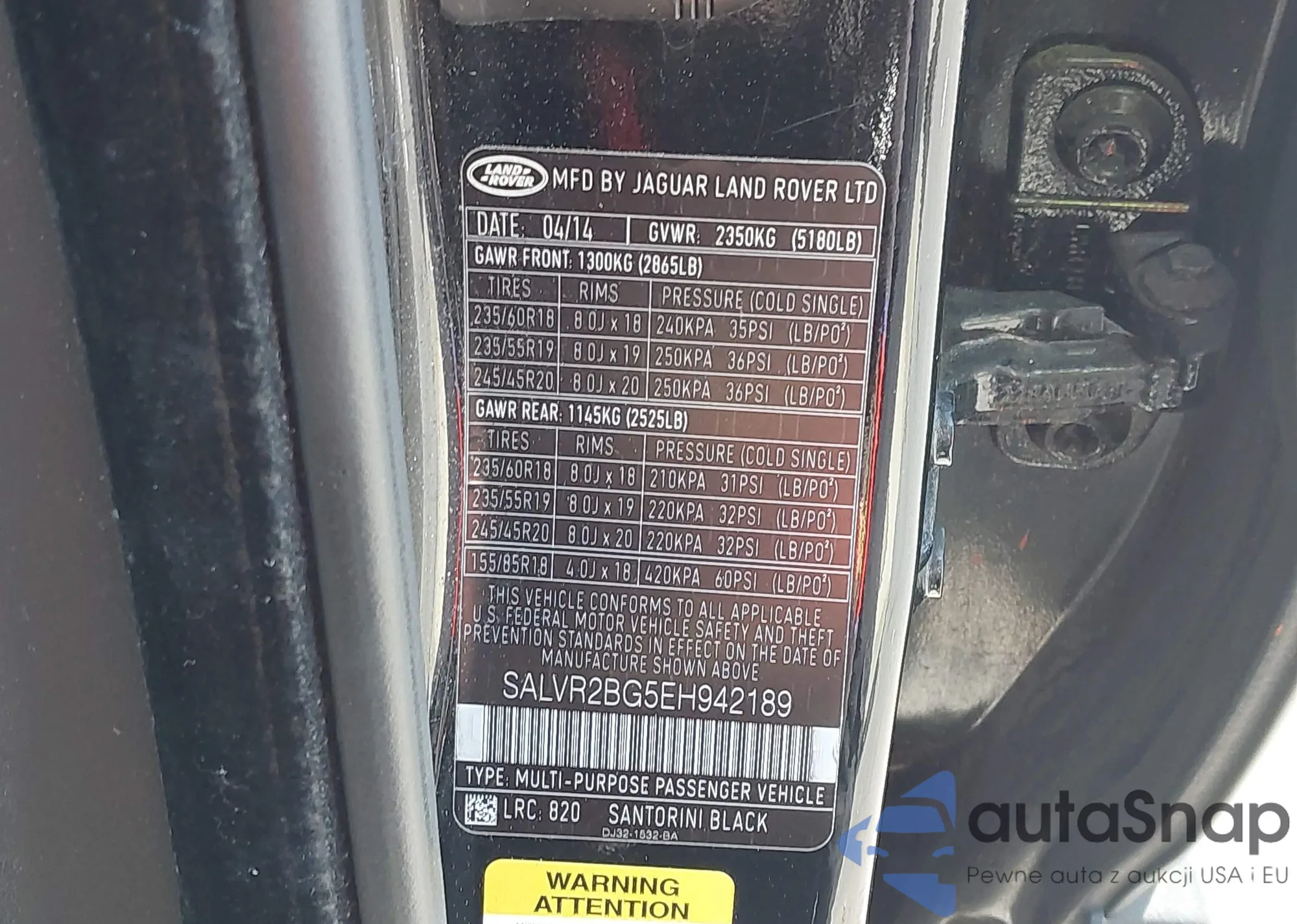 Samochód Land Rover Range Rover Evoque 2014 (VIN SALVR2BG5EH942189) sprzedaje go niezweryfikowany sprzedawca. Zalecamy raport Carfax i potwierdzenie możliwości rejestracji pojazdu przed zakupem.