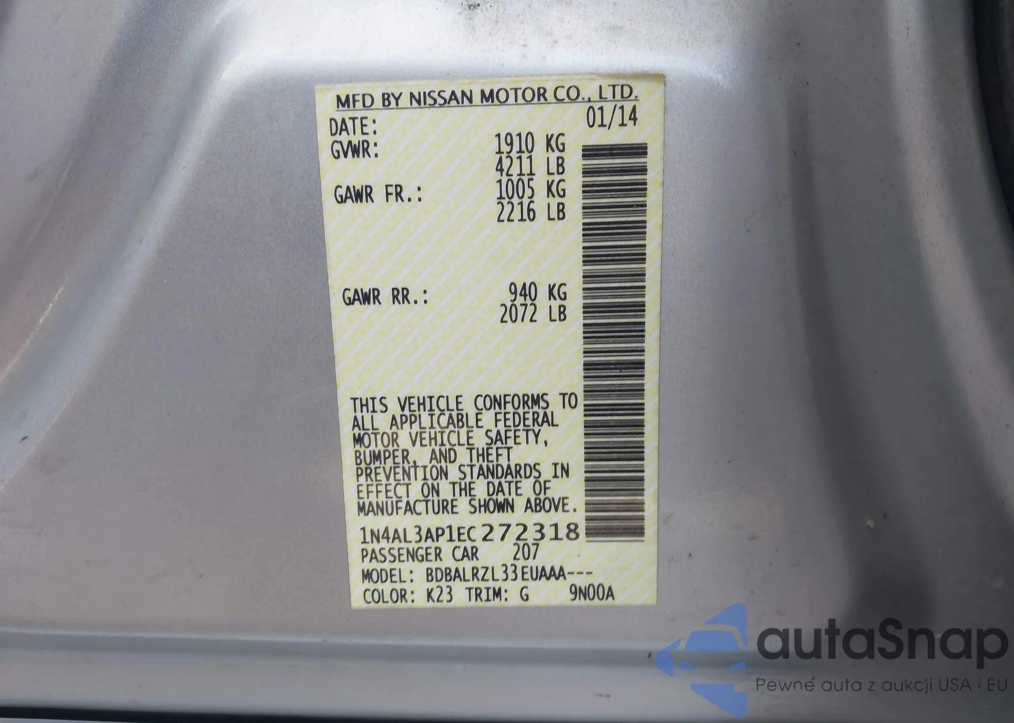 VIN: 1N4AL3AP1EC272318