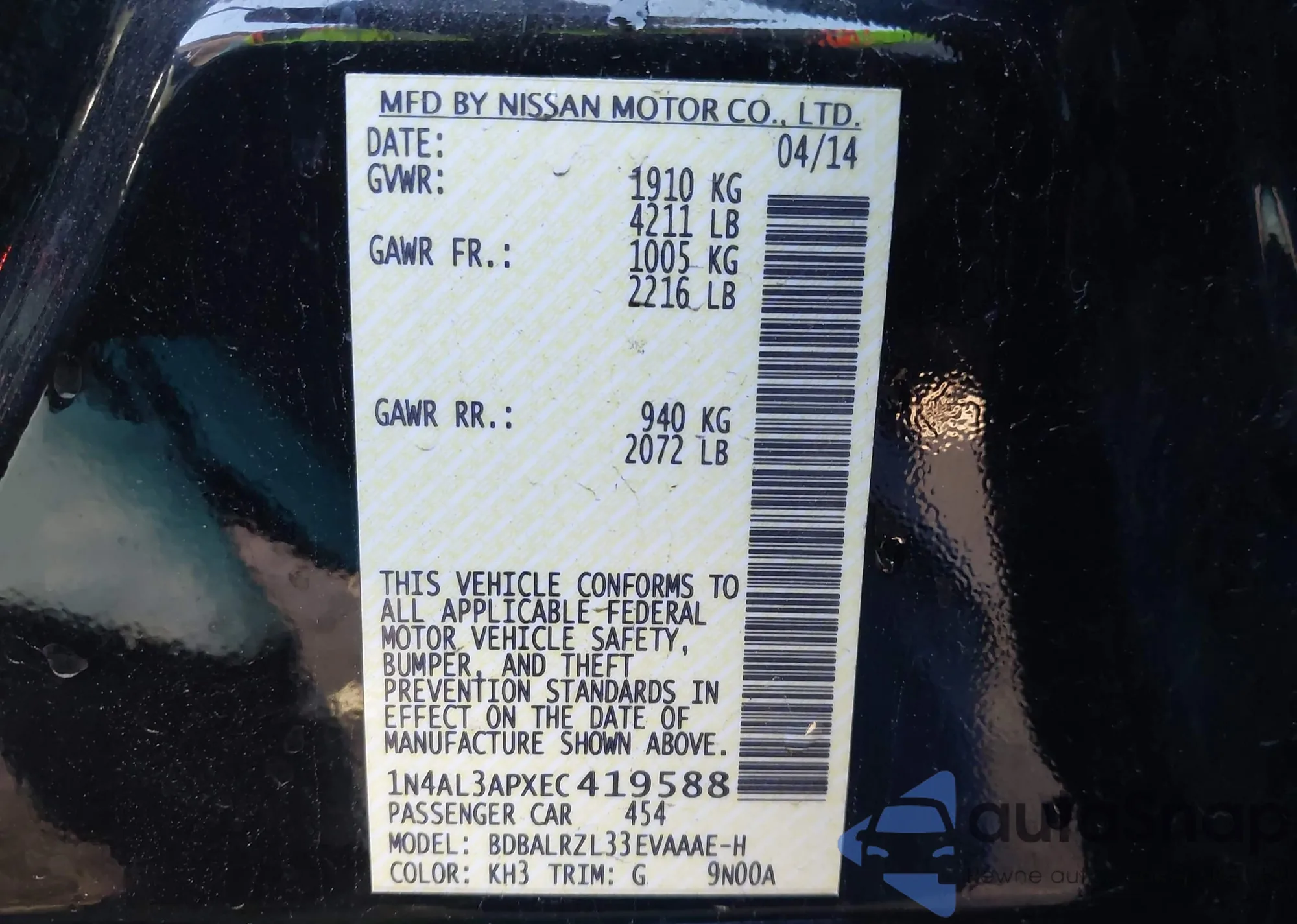 • VIN: 1N4AL3APXEC419588