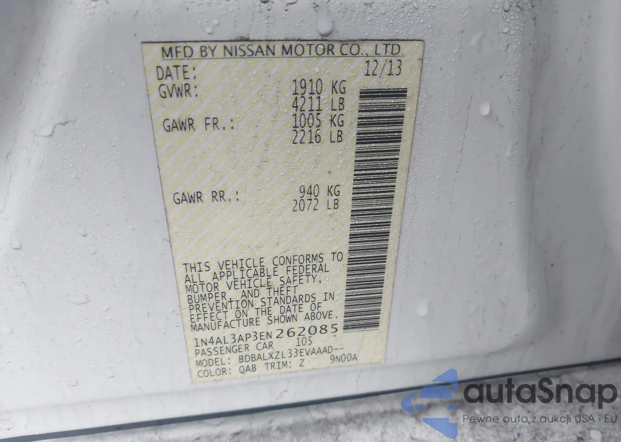 VIN: 1N4AL3AP3EN262085