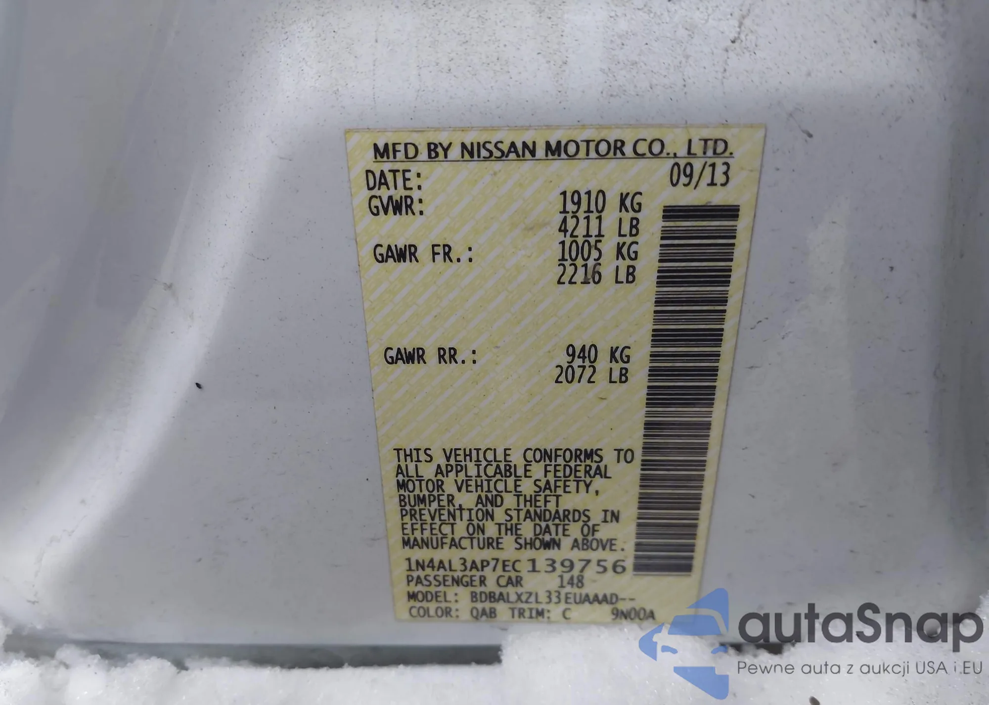 VIN: 1N4AL3AP7EC139756