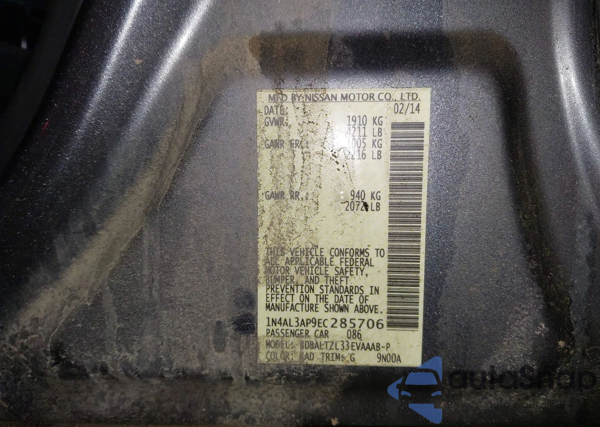• VIN: 1N4AL3AP9EC285706