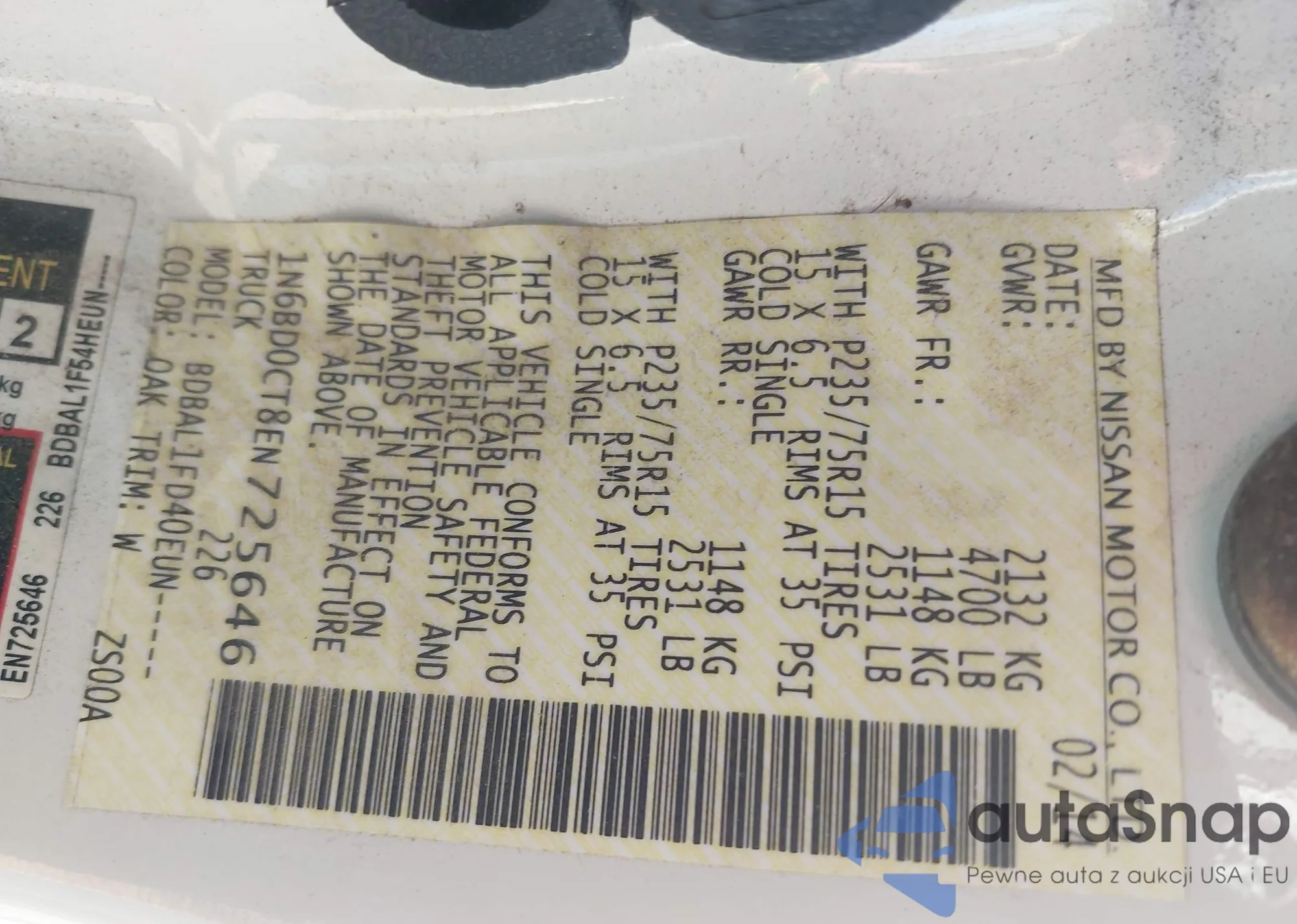 • VIN: 1N6BD0CT8EN725646