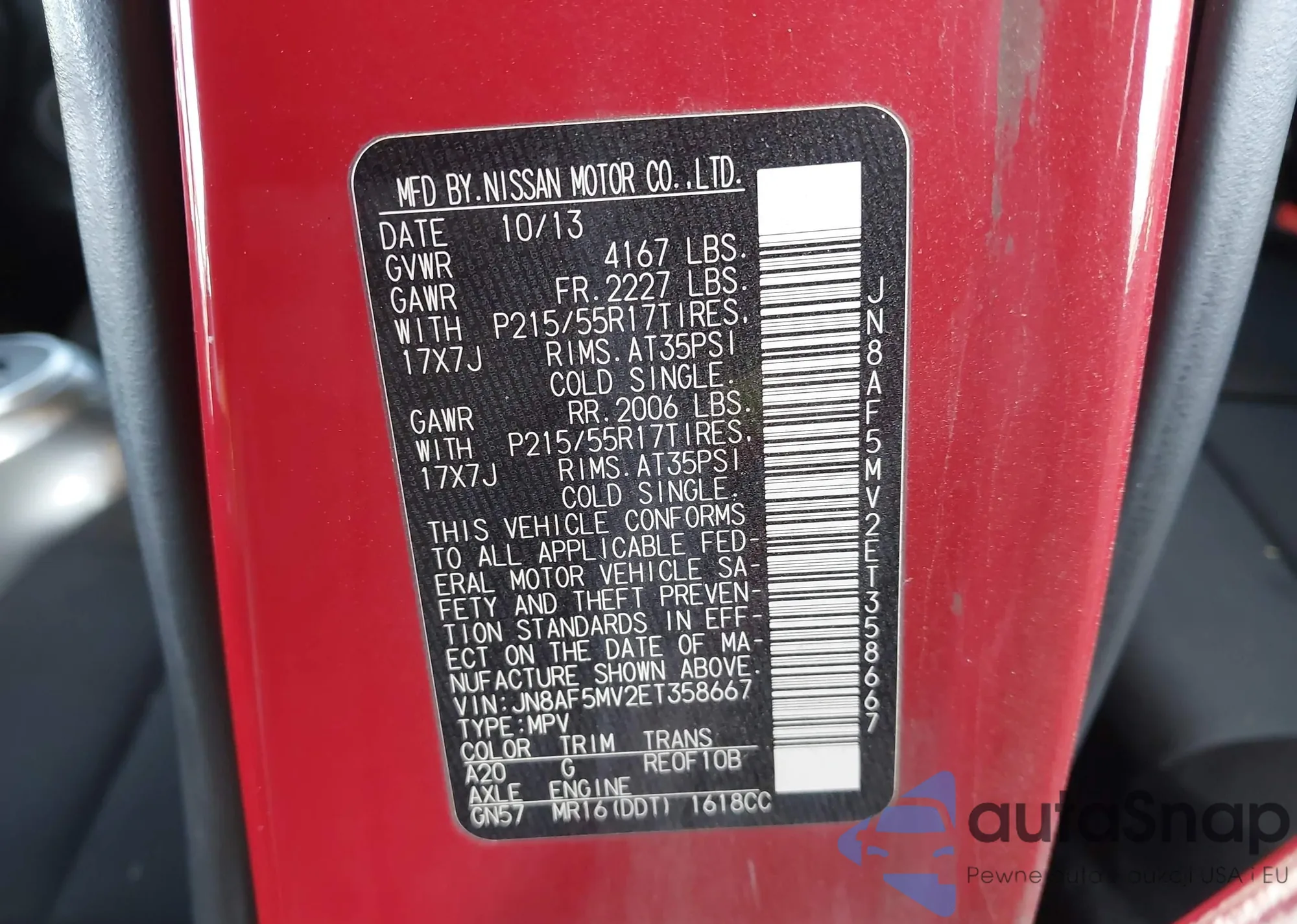• VIN: JN8AF5MV2ET358667