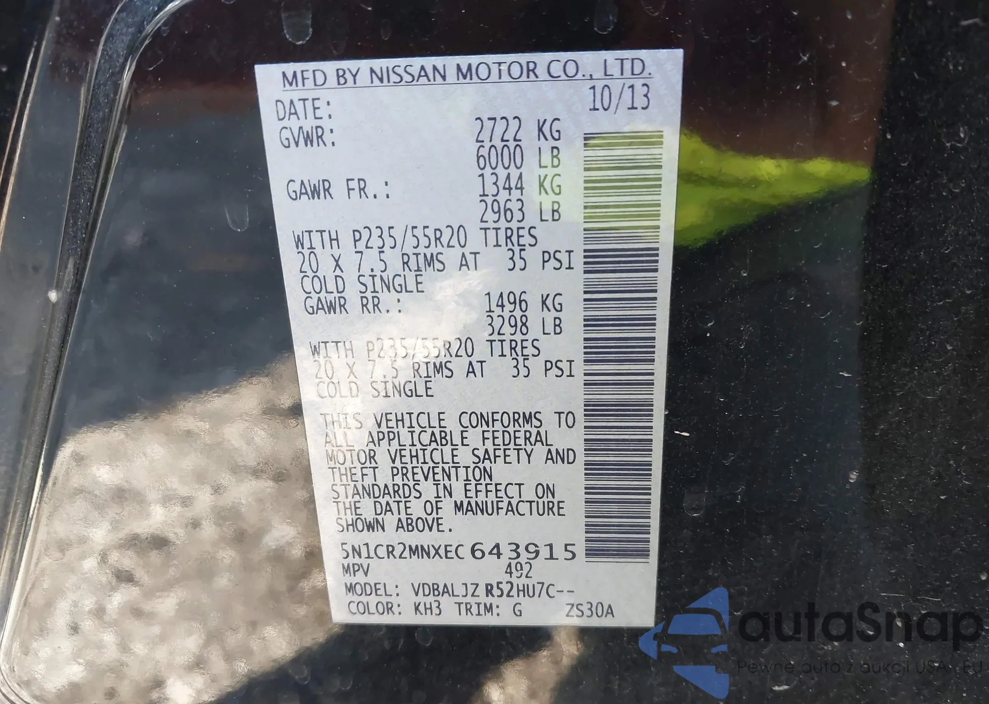 • VIN: 5N1CR2MNXEC643915
