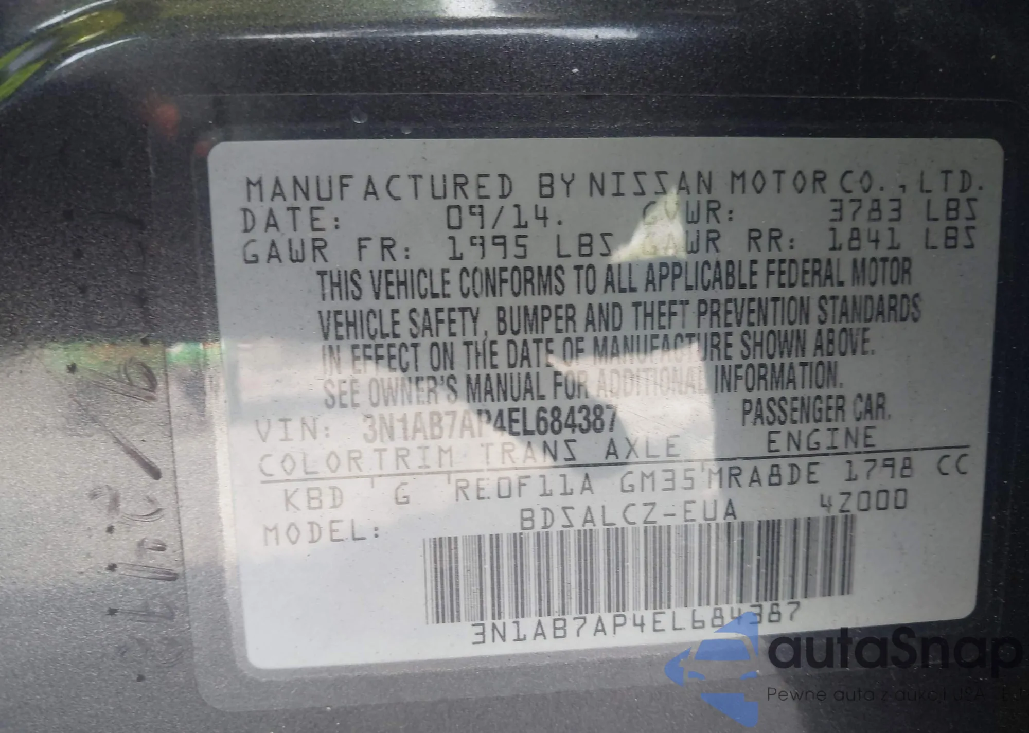 • VIN: 3N1AB7AP4EL684387