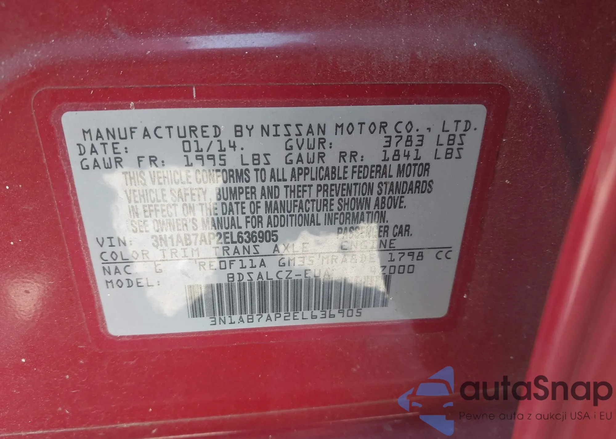 • VIN: 3N1AB7AP2EL636905