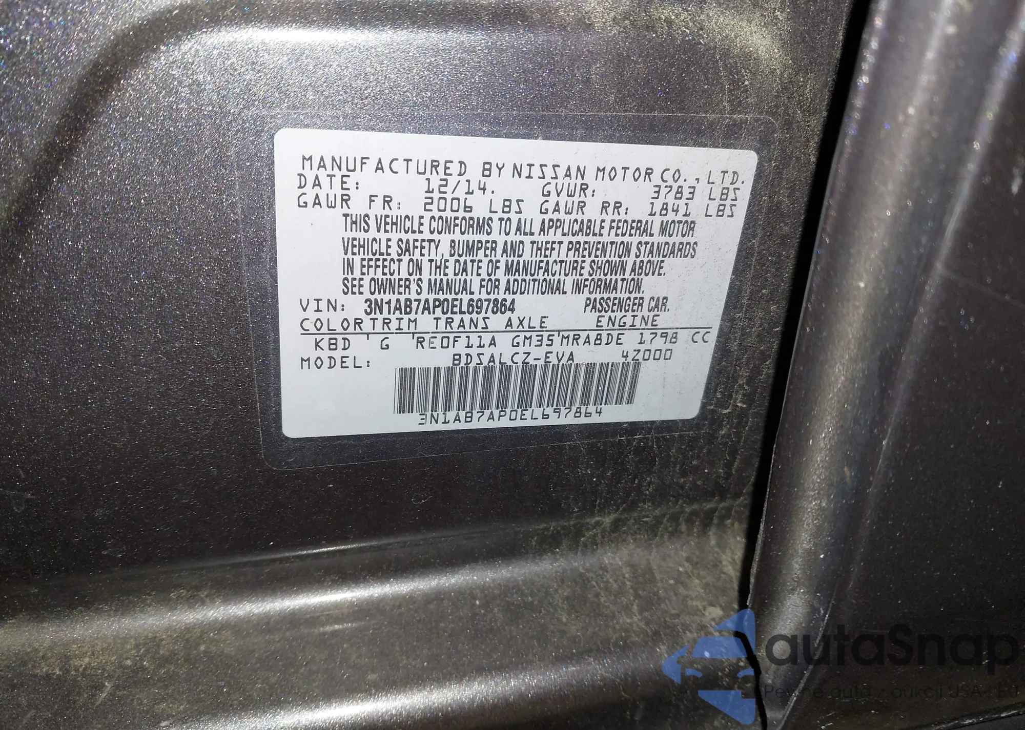 VIN: 3N1AB7AP0EL697864