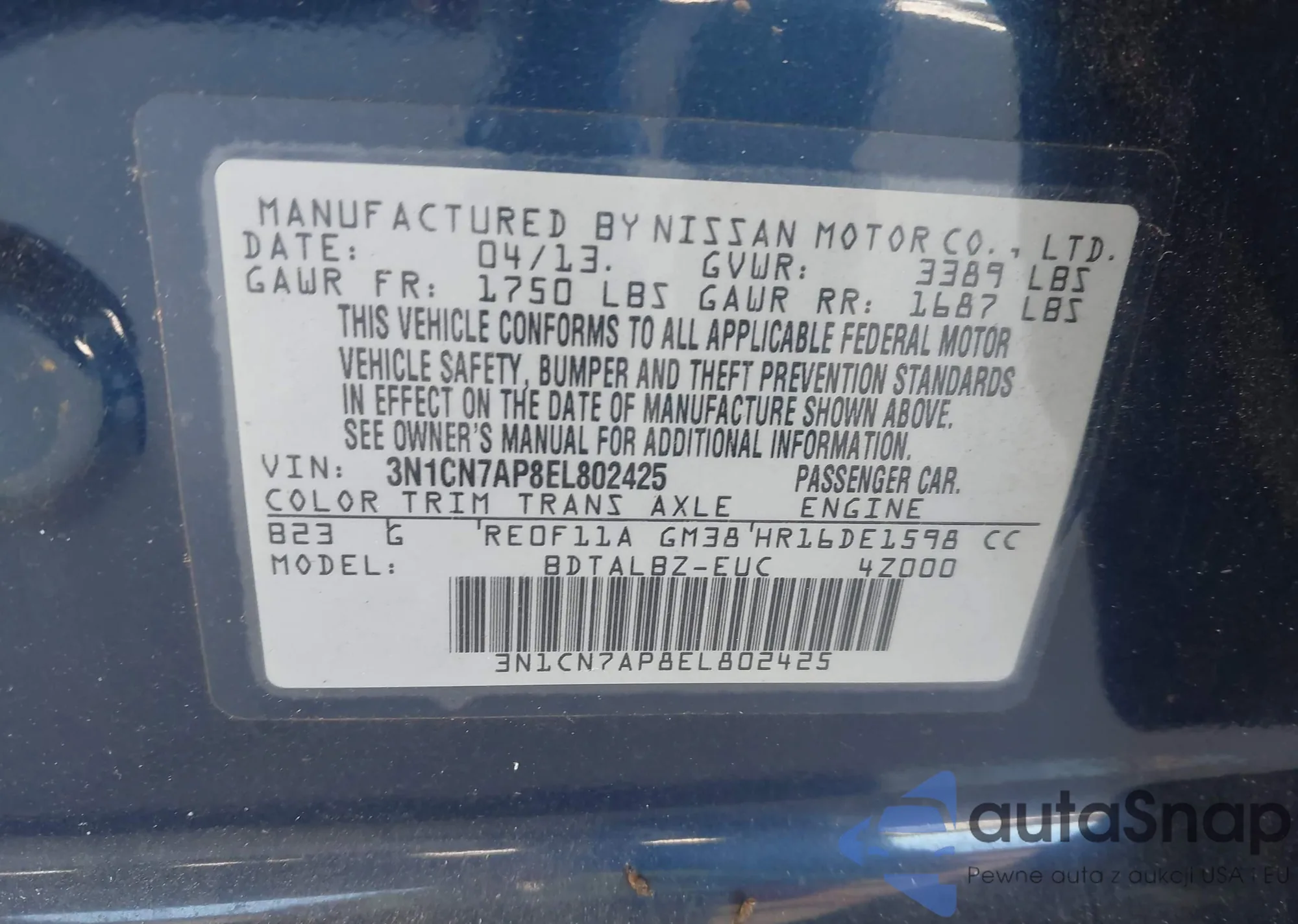 VIN: 3N1CN7AP8EL802425