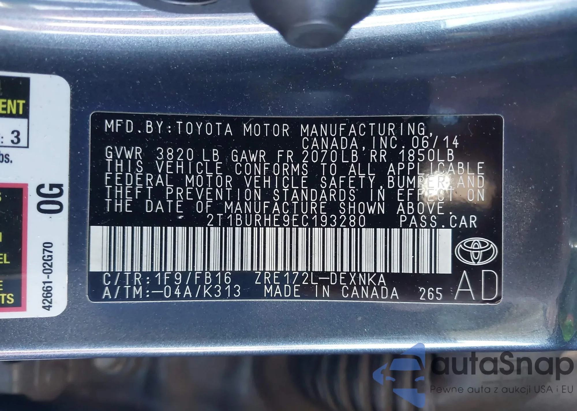 VIN: 2T1BURHE9EC193280