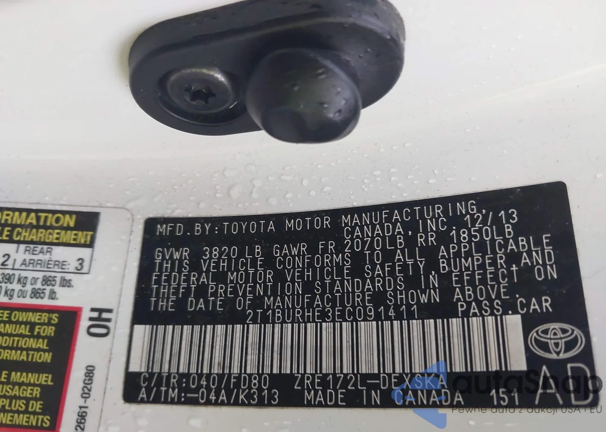 Samochód Toyota Corolla 2014 (VIN 2T1BURHE3EC091411) nie był wcześniej licytowany. Dokumenty są czyste, przebieg odpowiada lub jest niższy niż średnia rynku. Sprzedaje go firma ubezpieczeniowa – polecamy zakup. Dostawa do portu zajmie ok. 6–8 tygodni.