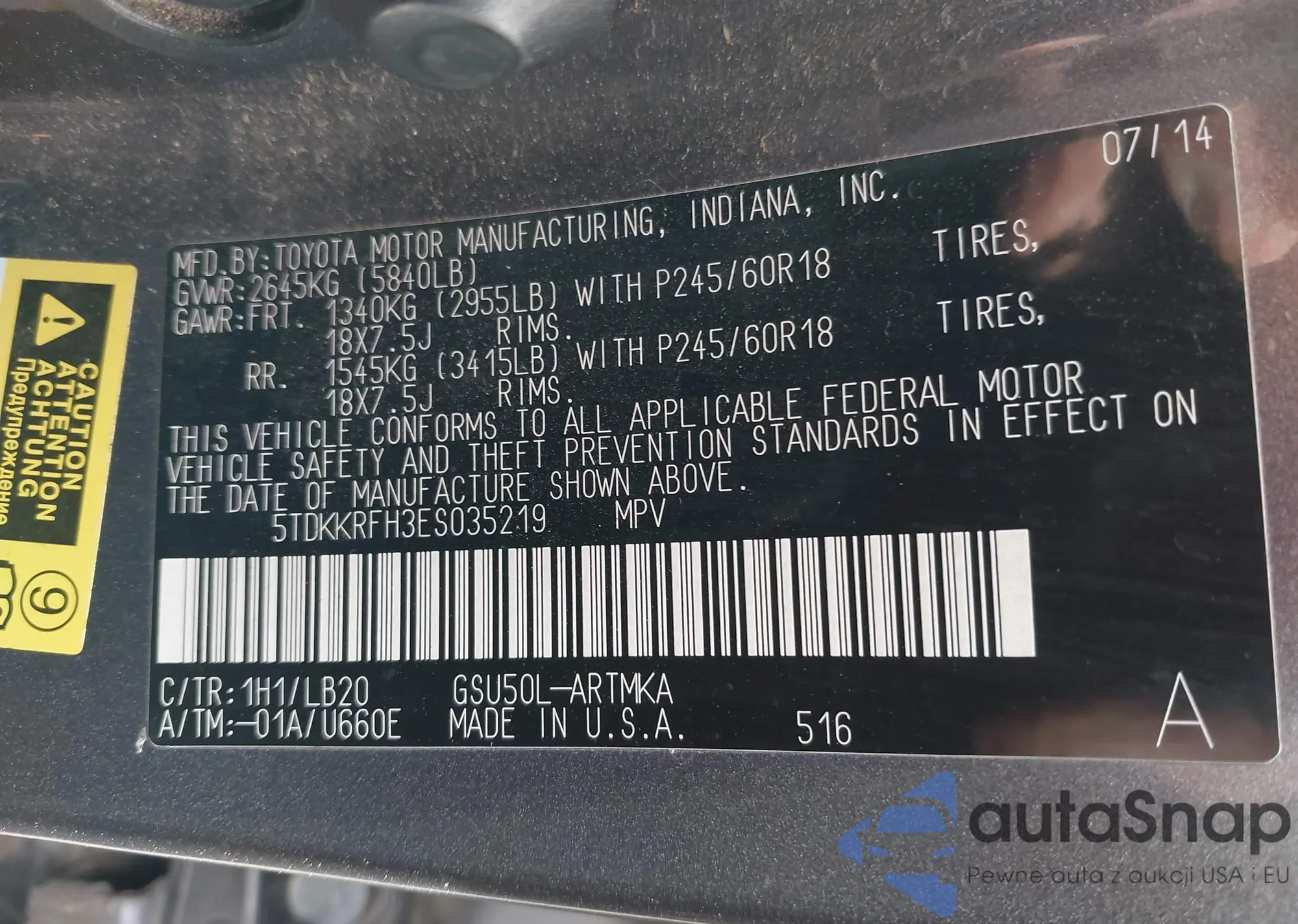 Samochód Toyota Highlander 2014 (VIN 5TDKKRFH3ES035219) nie był wcześniej licytowany. Dokumenty są czyste, przebieg odpowiada lub jest niższy niż średnia rynku. Sprzedaje go firma ubezpieczeniowa – polecamy zakup. Dostawa do portu zajmie ok. 6–8 tygodni.