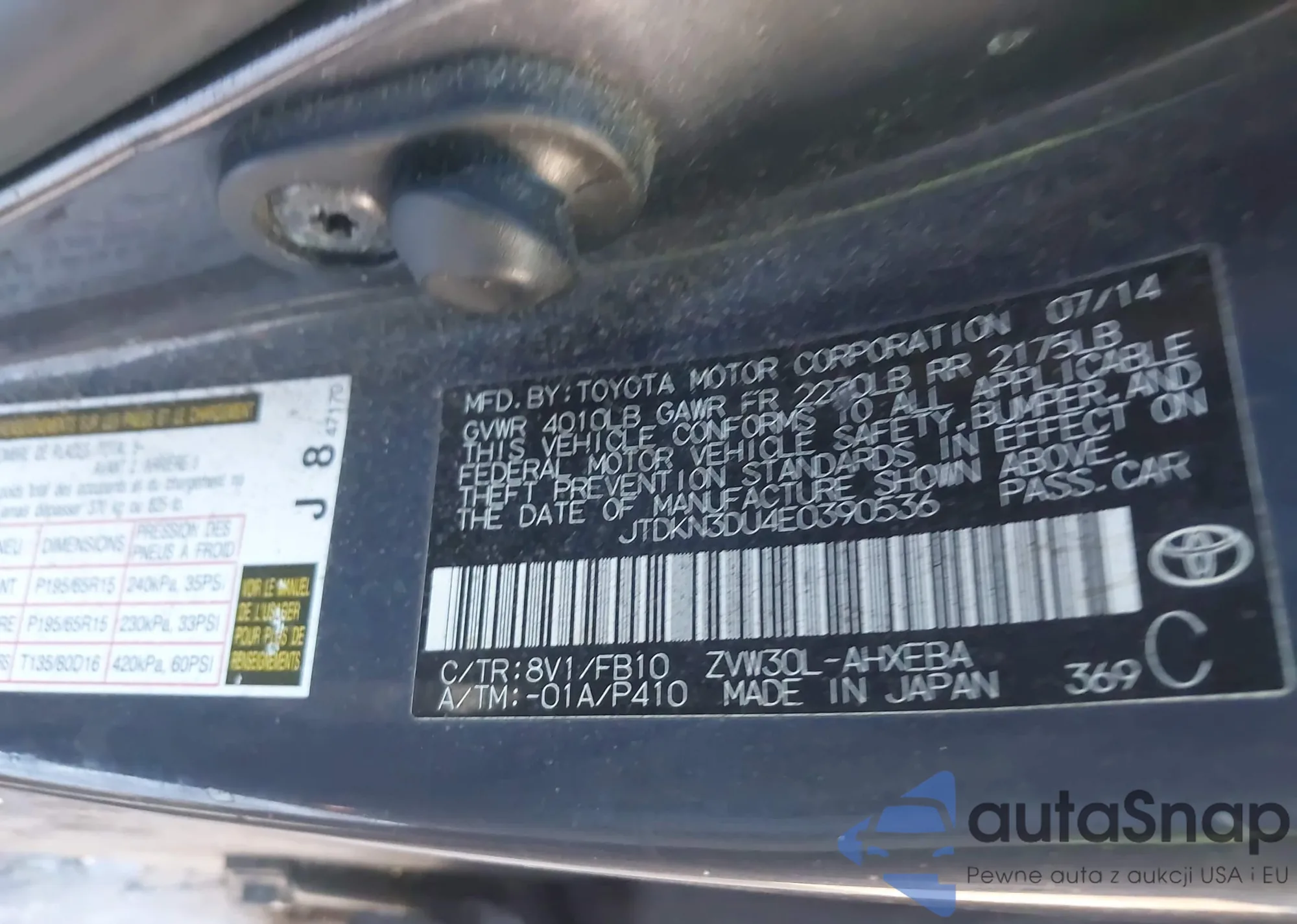 • VIN: JTDKN3DU4E0390536