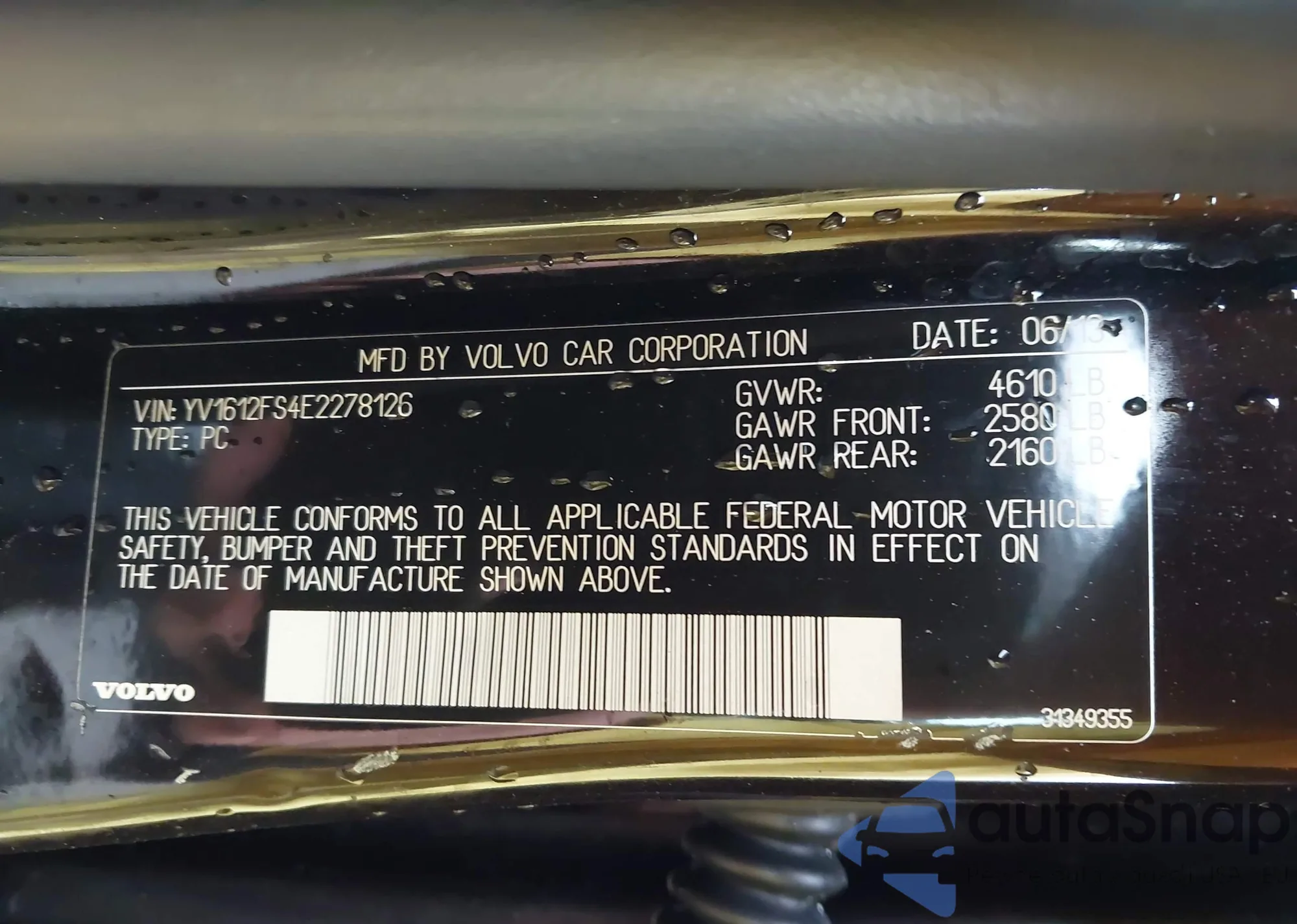 VIN: YV1612FS4E2278126