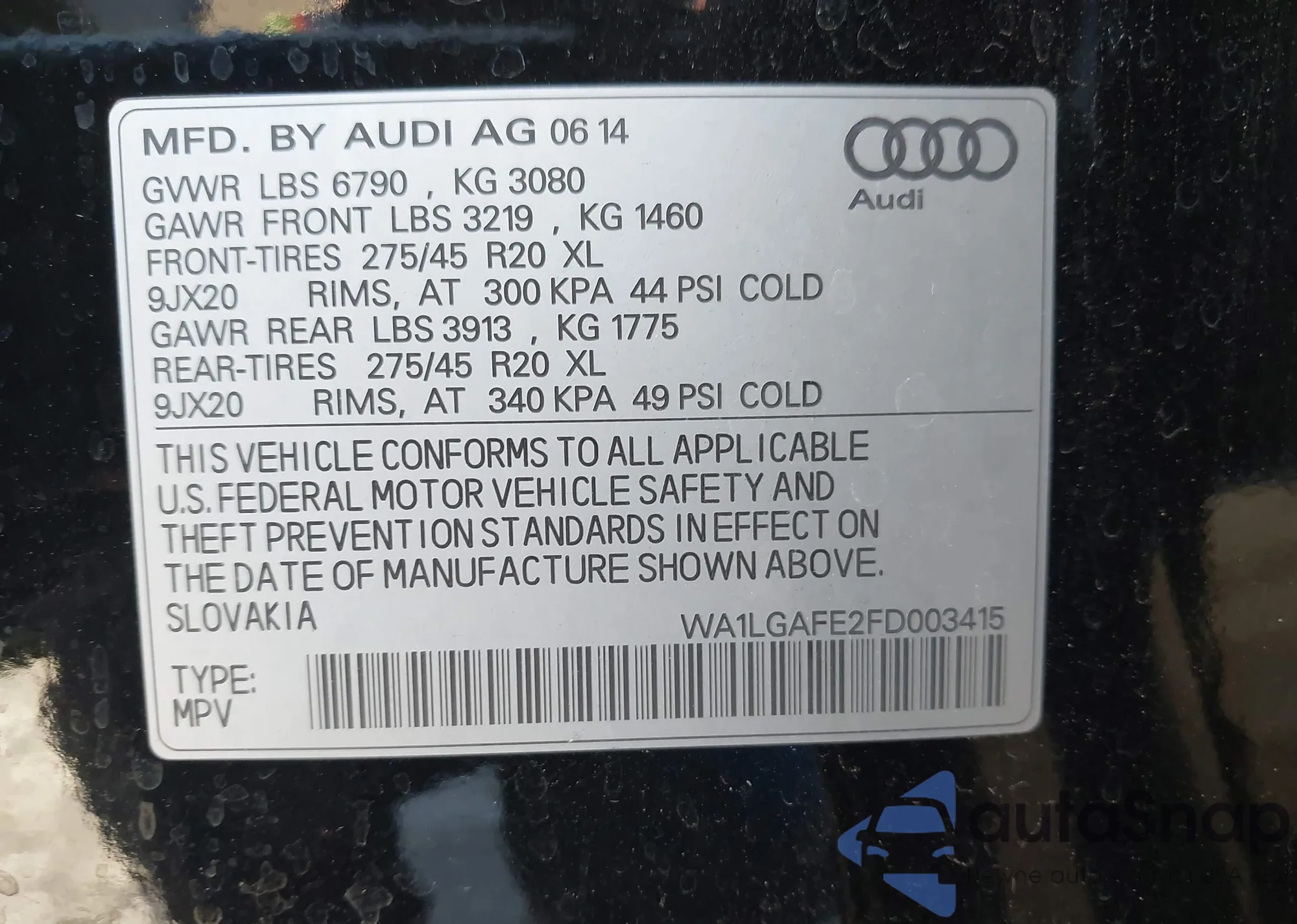 Samochód Audi Q7 2015 (VIN WA1LGAFE2FD003415) nie był wcześniej licytowany. Dokumenty są czyste, przebieg odpowiada lub jest niższy niż średnia rynku. Sprzedaje go firma ubezpieczeniowa – polecamy zakup. Dostawa do portu zajmie ok. 6–8 tygodni.