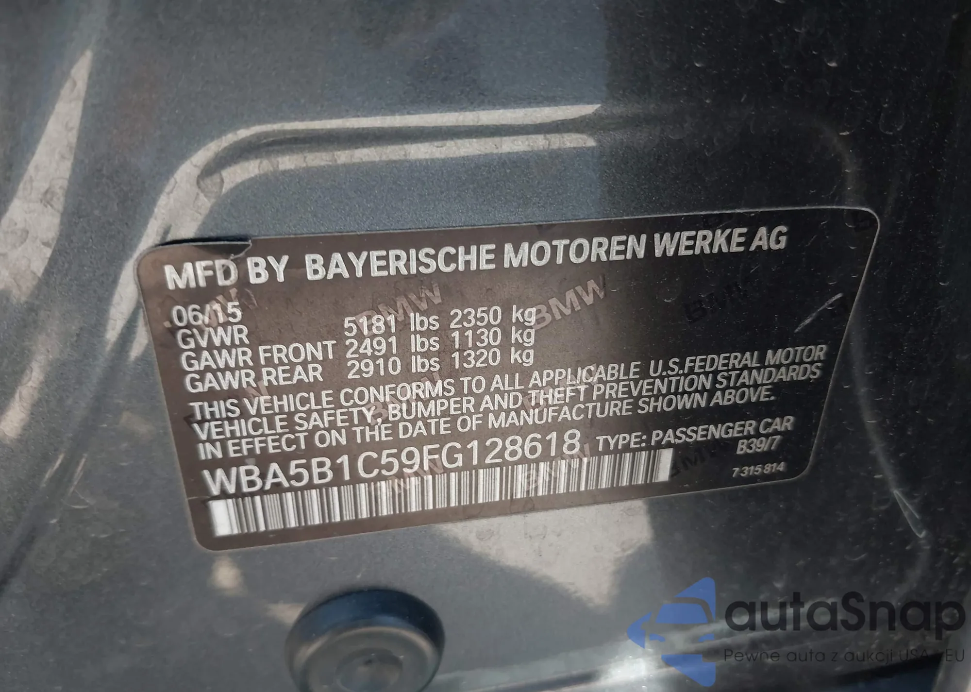 Samochód BMW 5er 2015 (VIN WBA5B1C59FG128618) nie był wcześniej licytowany. Dokumenty są czyste, przebieg odpowiada lub jest niższy niż średnia rynku. Sprzedaje go firma ubezpieczeniowa – polecamy zakup. Dostawa do portu zajmie ok. 6–8 tygodni.