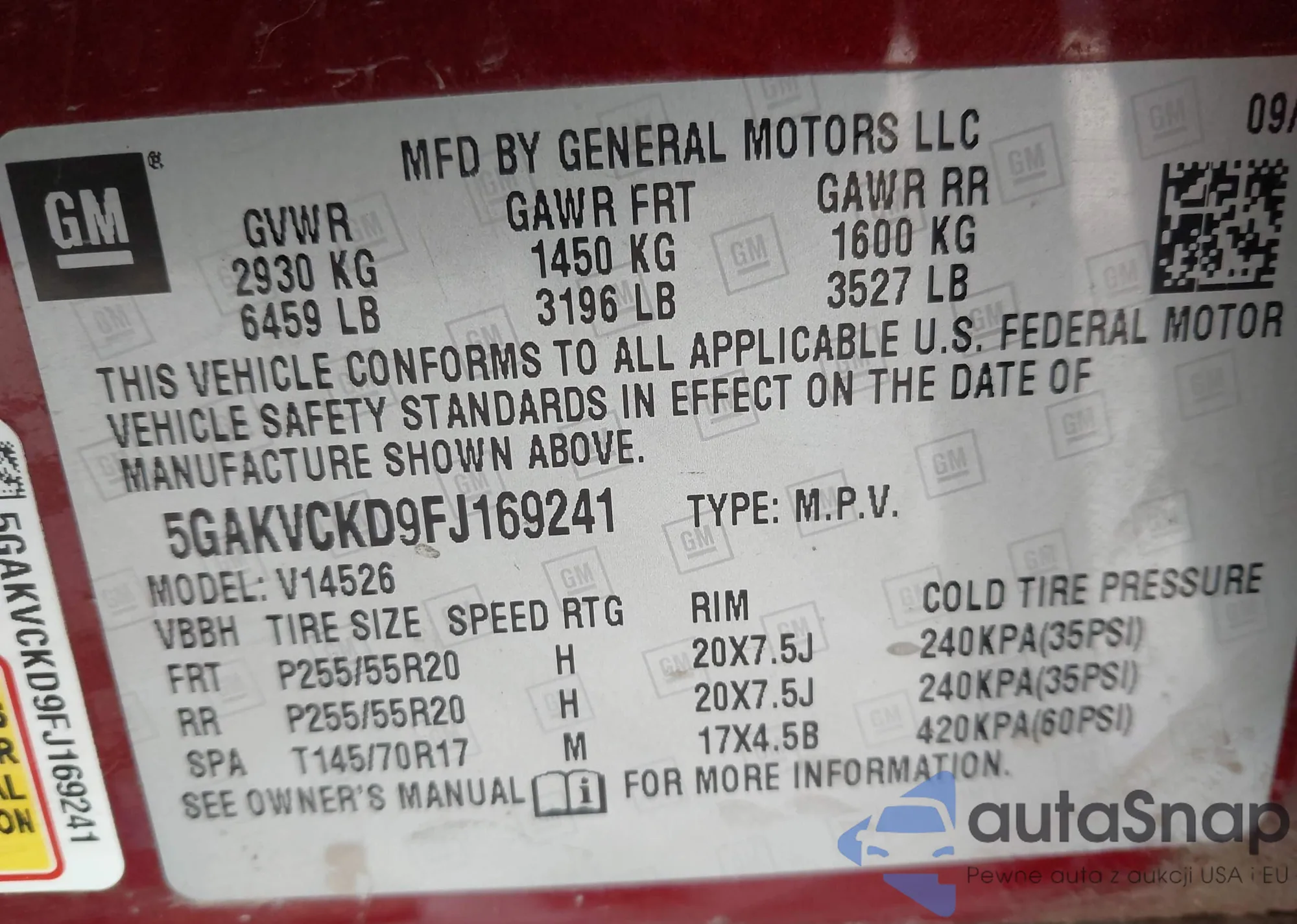 VIN: 5GAKVCKD9FJ169241