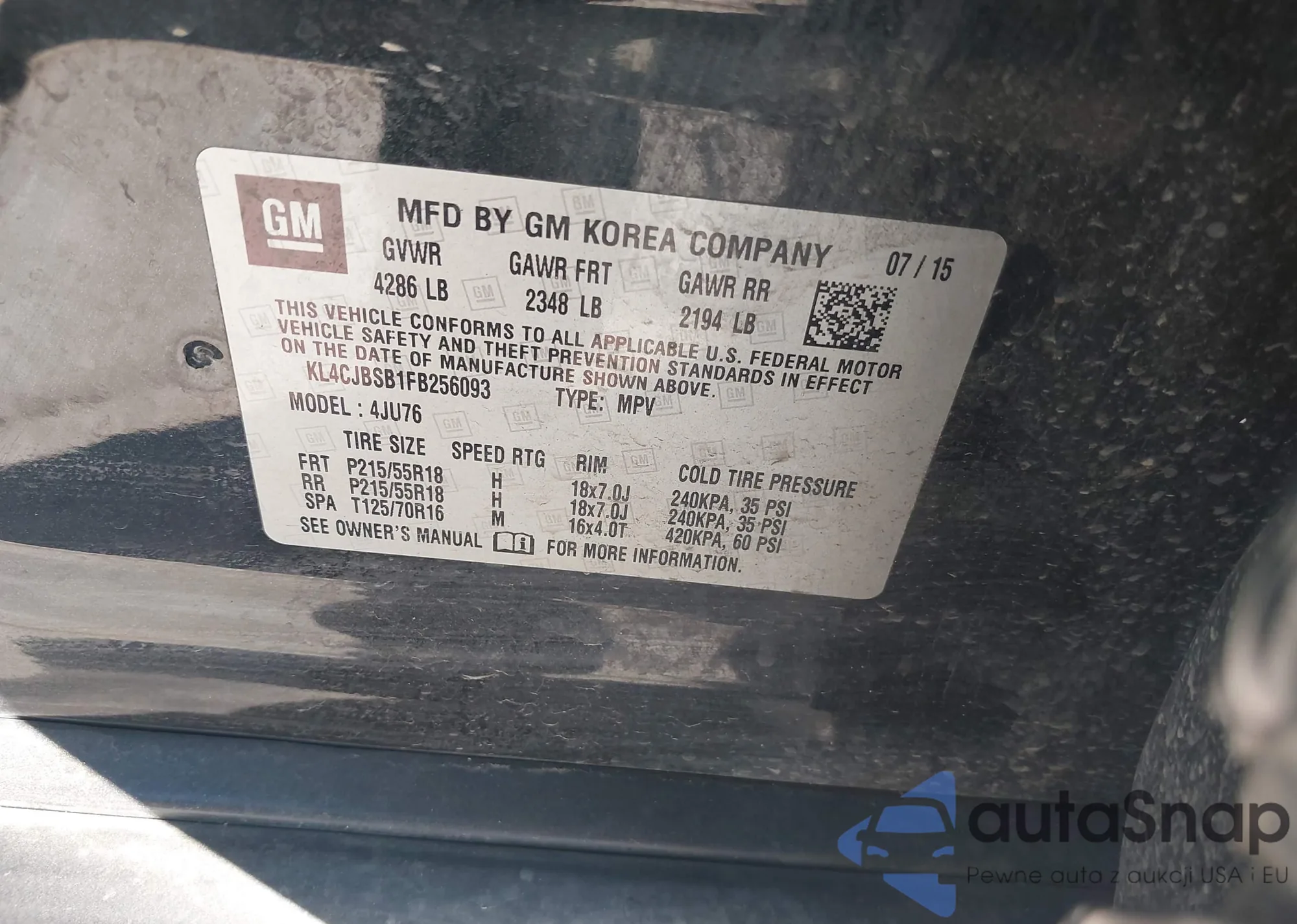 Samochód Buick Encore 2015 (VIN KL4CJBSB1FB256093) nie był wcześniej licytowany. Dokumenty są czyste, przebieg odpowiada lub jest niższy niż średnia rynku. Sprzedaje go firma ubezpieczeniowa – polecamy zakup. Dostawa do portu zajmie ok. 6–8 tygodni.
