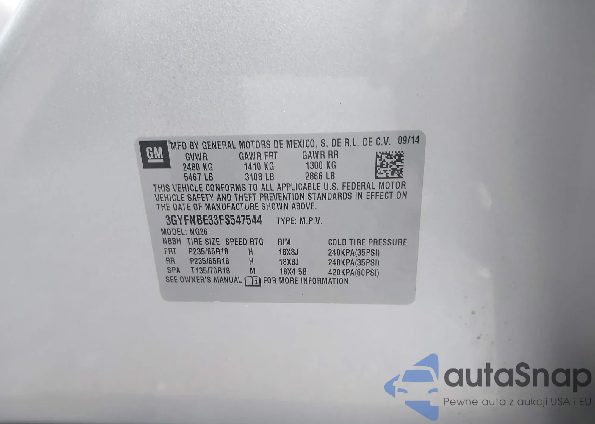 Samochód Cadillac SRX 2015 (VIN 3GYFNBE33FS547544) nie był wcześniej licytowany. Dokumenty są czyste, przebieg odpowiada lub jest niższy niż średnia rynku. Sprzedaje go firma ubezpieczeniowa – polecamy zakup. Dostawa do portu zajmie ok. 6–8 tygodni.