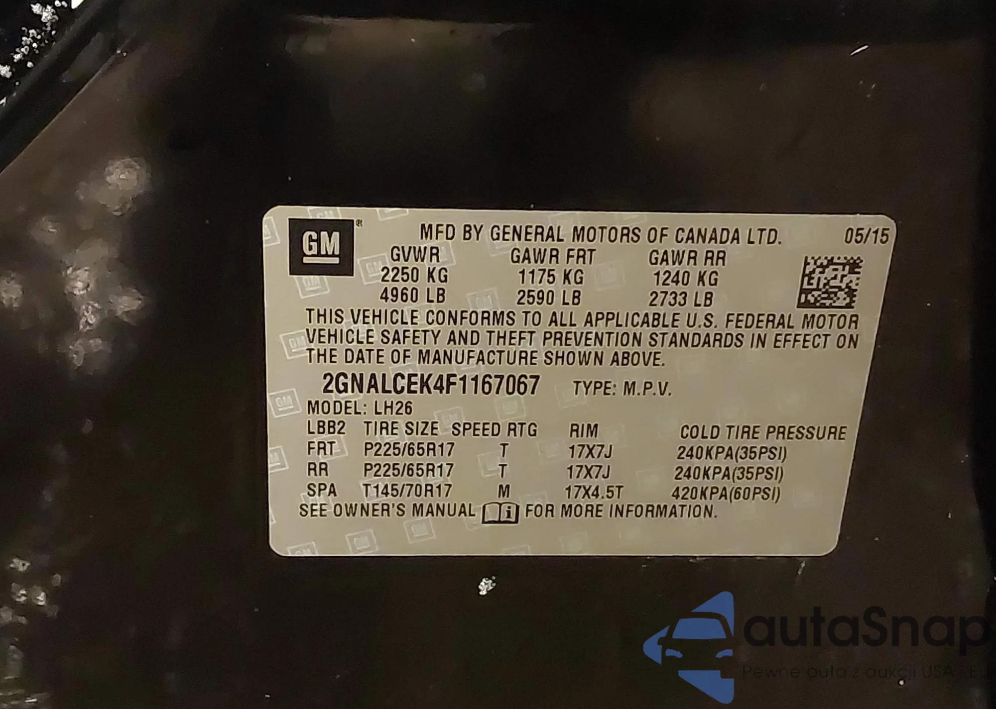 • VIN: 2GNALCEK4F1167067