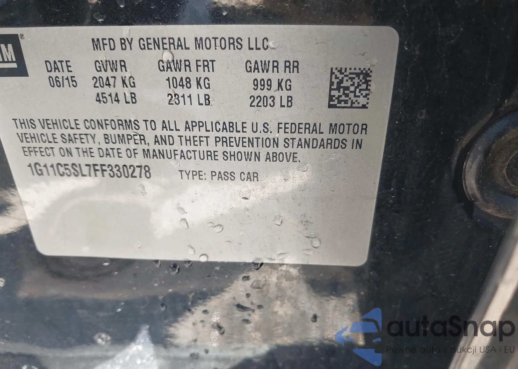 Samochód Chevrolet Malibu 2015 (VIN 1G11C5SL7FF330278) nie był wcześniej licytowany. Dokumenty są czyste, przebieg odpowiada lub jest niższy niż średnia rynku. Sprzedaje go firma ubezpieczeniowa – polecamy zakup. Dostawa do portu zajmie ok. 6–8 tygodni.